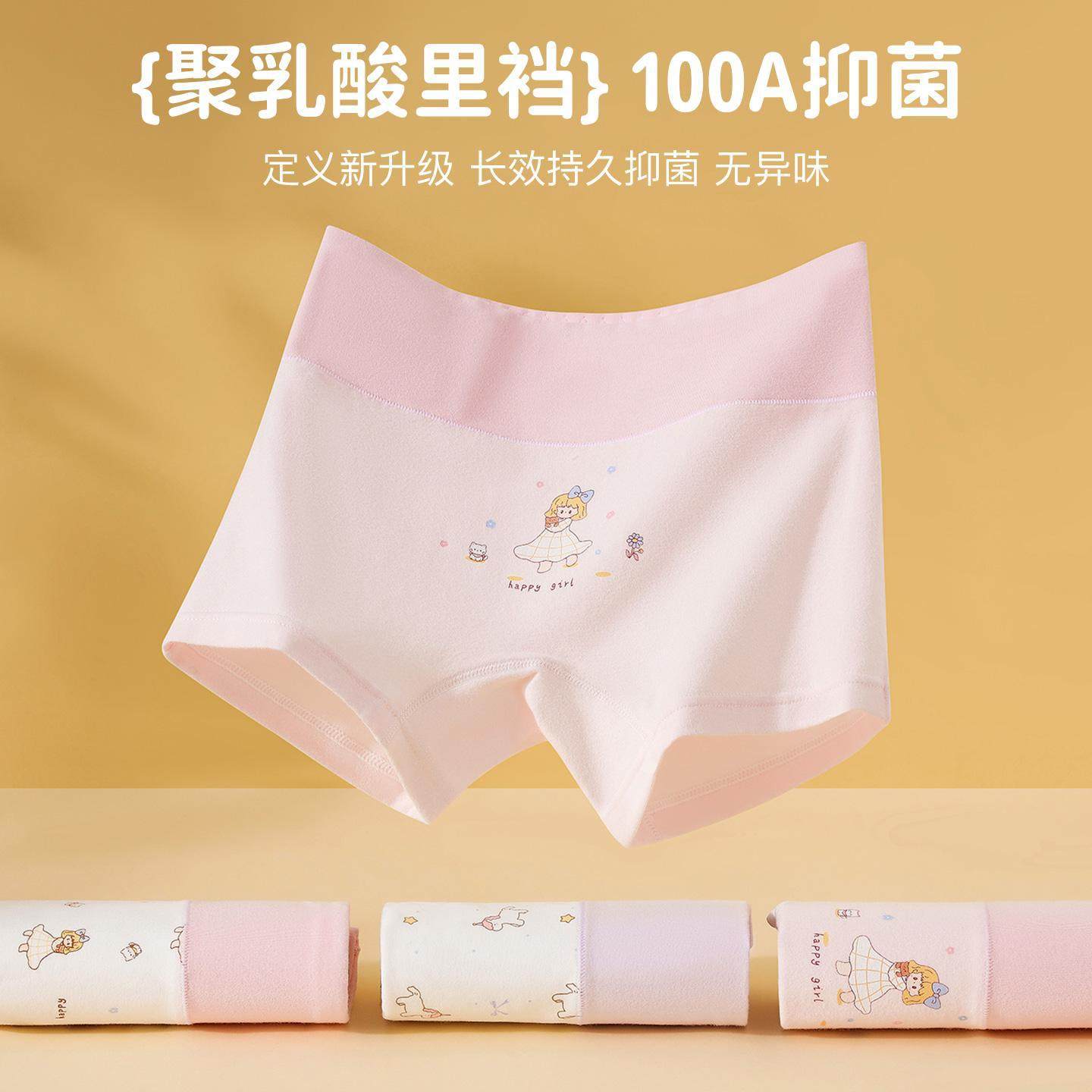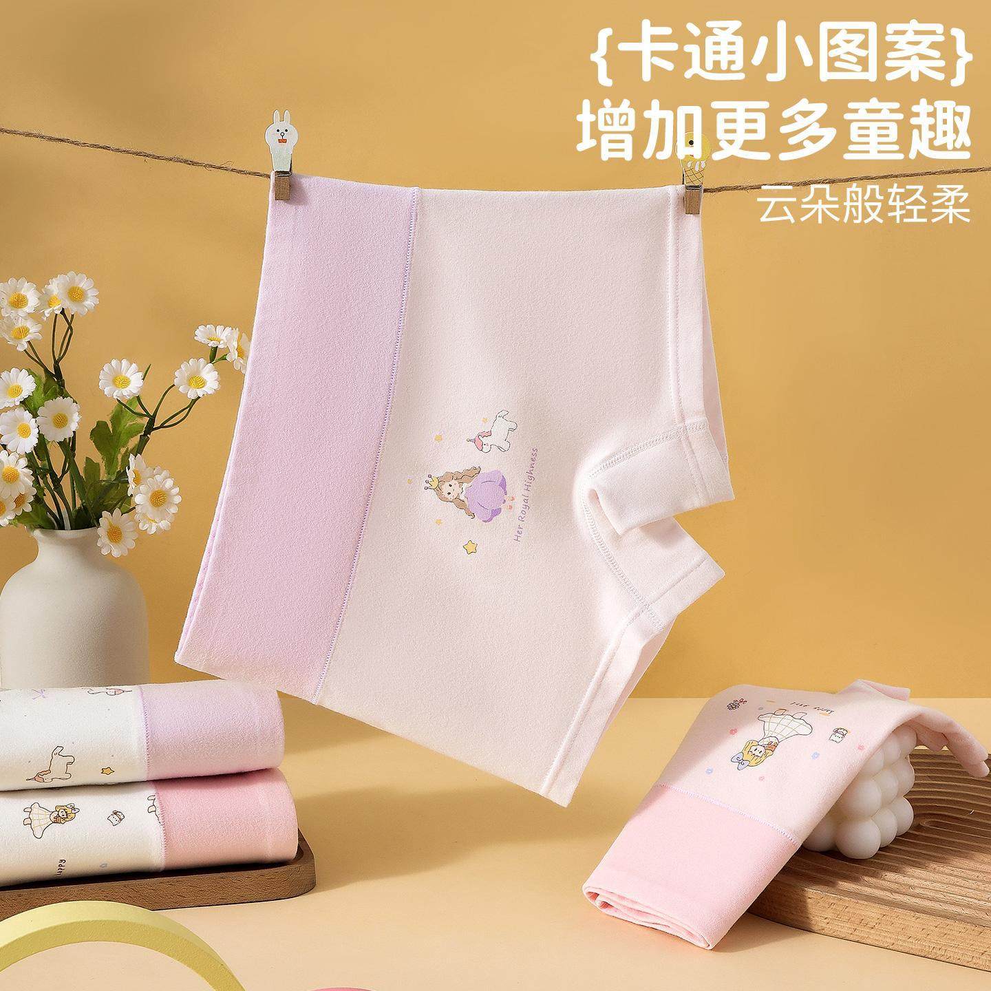 高腰护肚纯棉磨毛女童四角100A抑菌聚乳酸发育期内裤德绒保暖