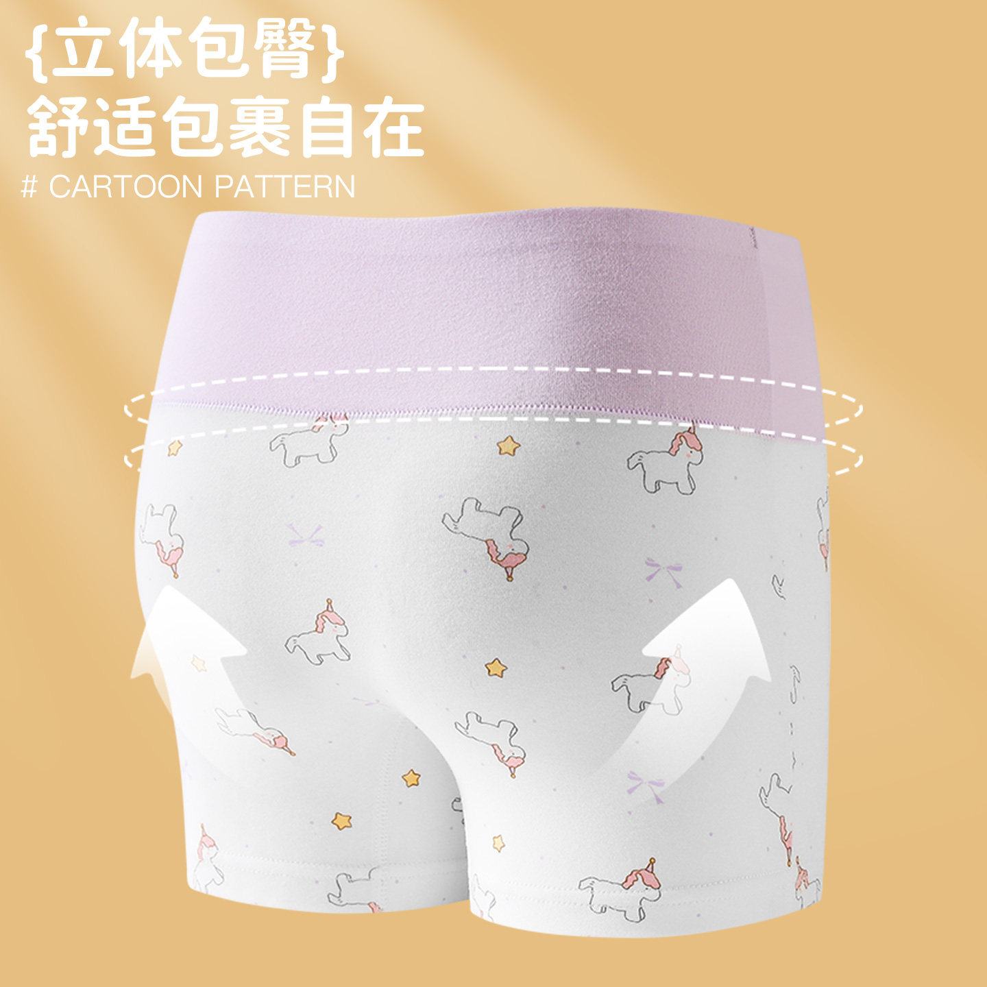 高腰护肚纯棉女童四角裤100A抑菌