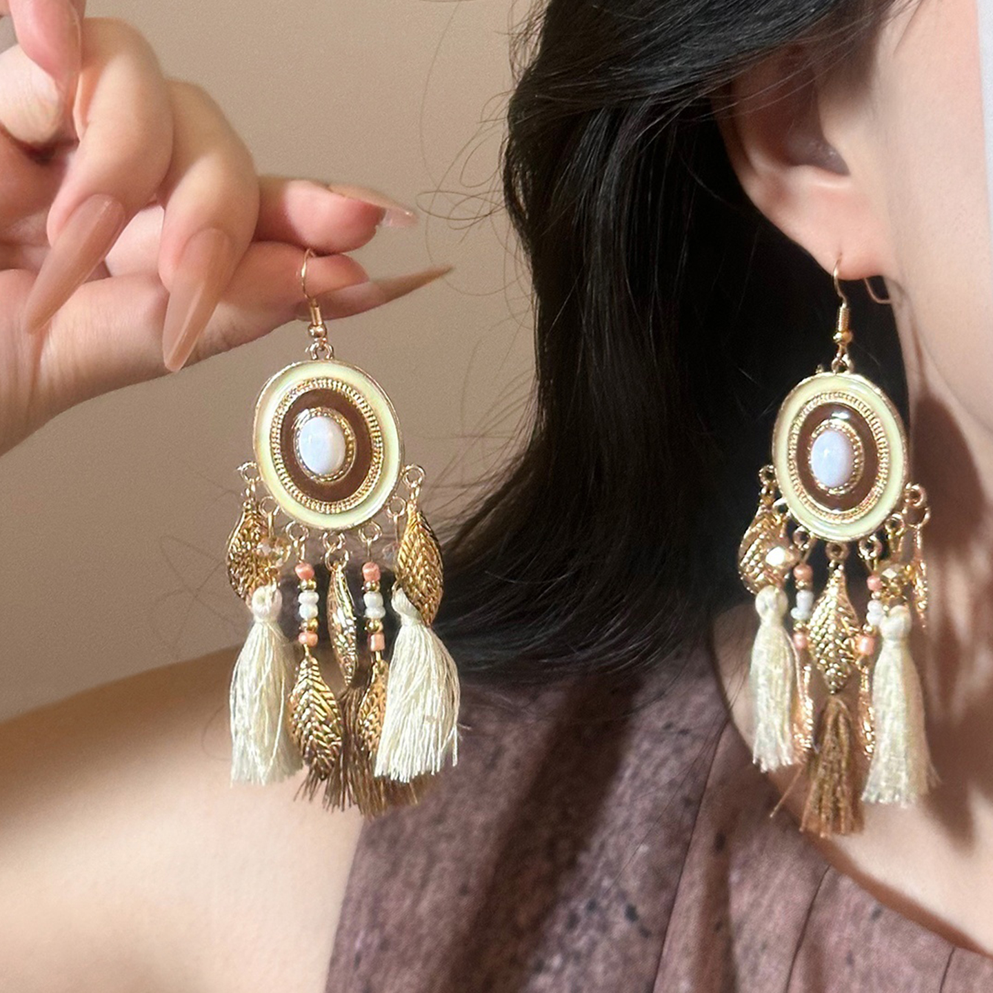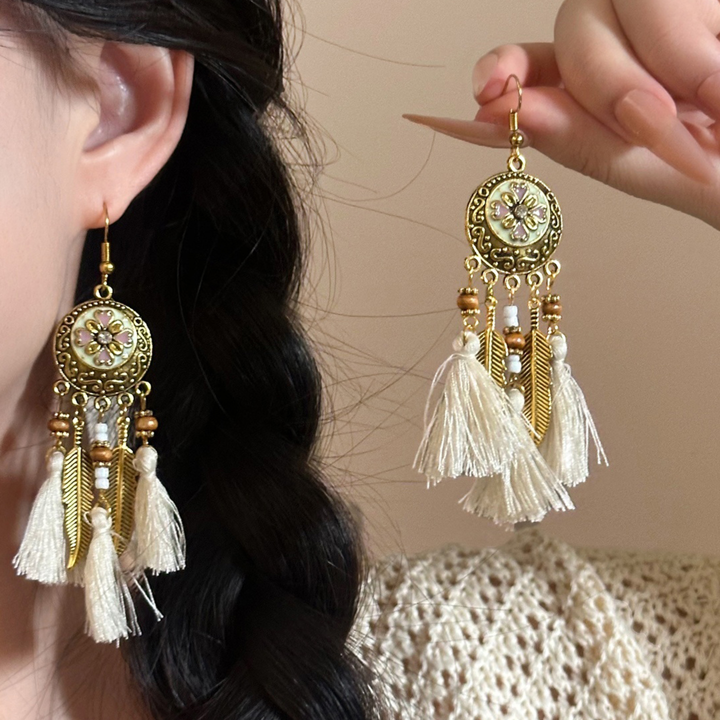 异域民族风长款耳环女度假风超仙羽毛流苏耳坠波西米亚风新疆耳饰