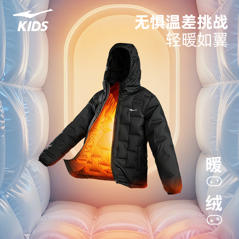 鸿星尔克童装儿童羽绒服男童冬季新款保暖外套防泼水女童连帽冬装