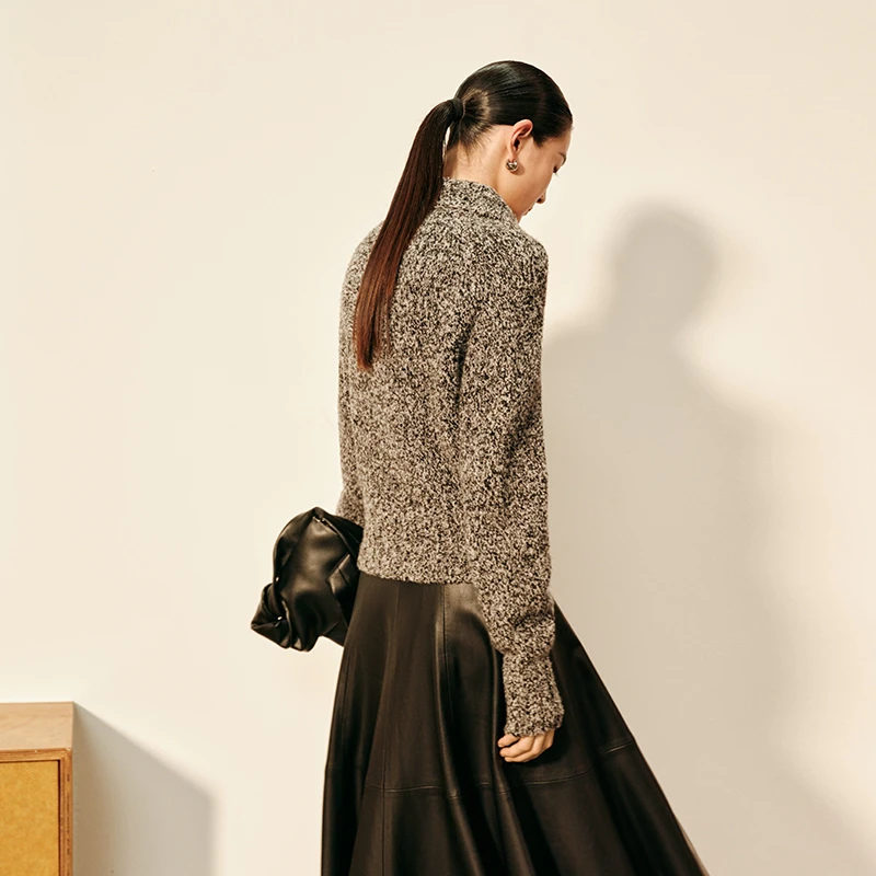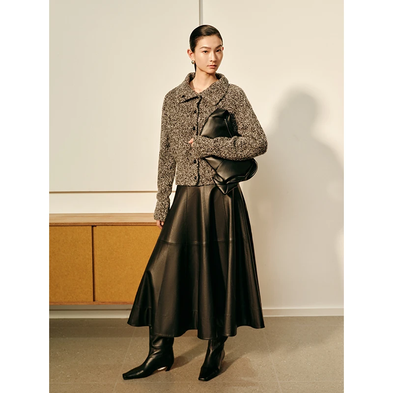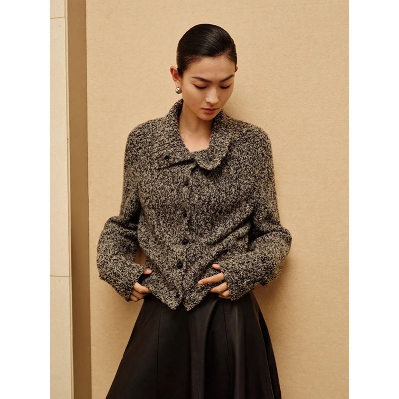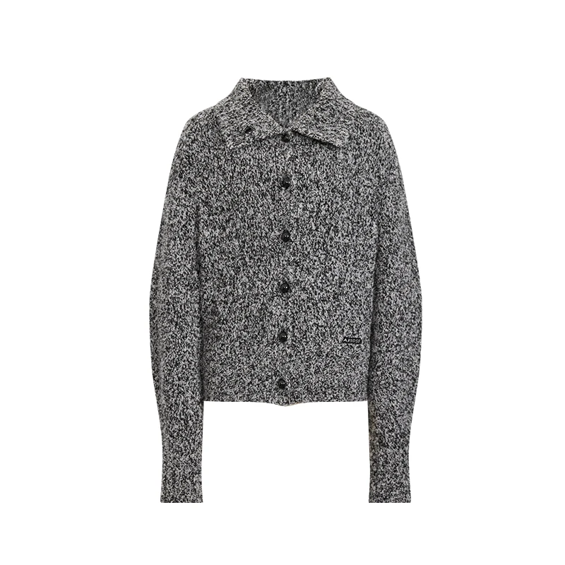 艾诺丝尚忆2025秋冬新款百搭翻领针织衫开衫女毛衣804148