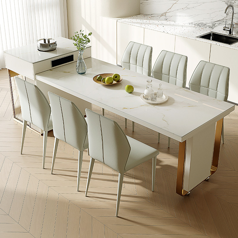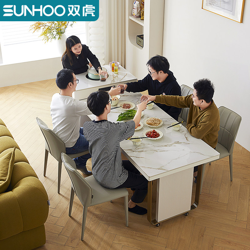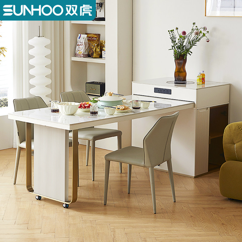 双虎伸缩岩板岛台餐桌带电磁炉一体家用2024新款多功能饭桌23710