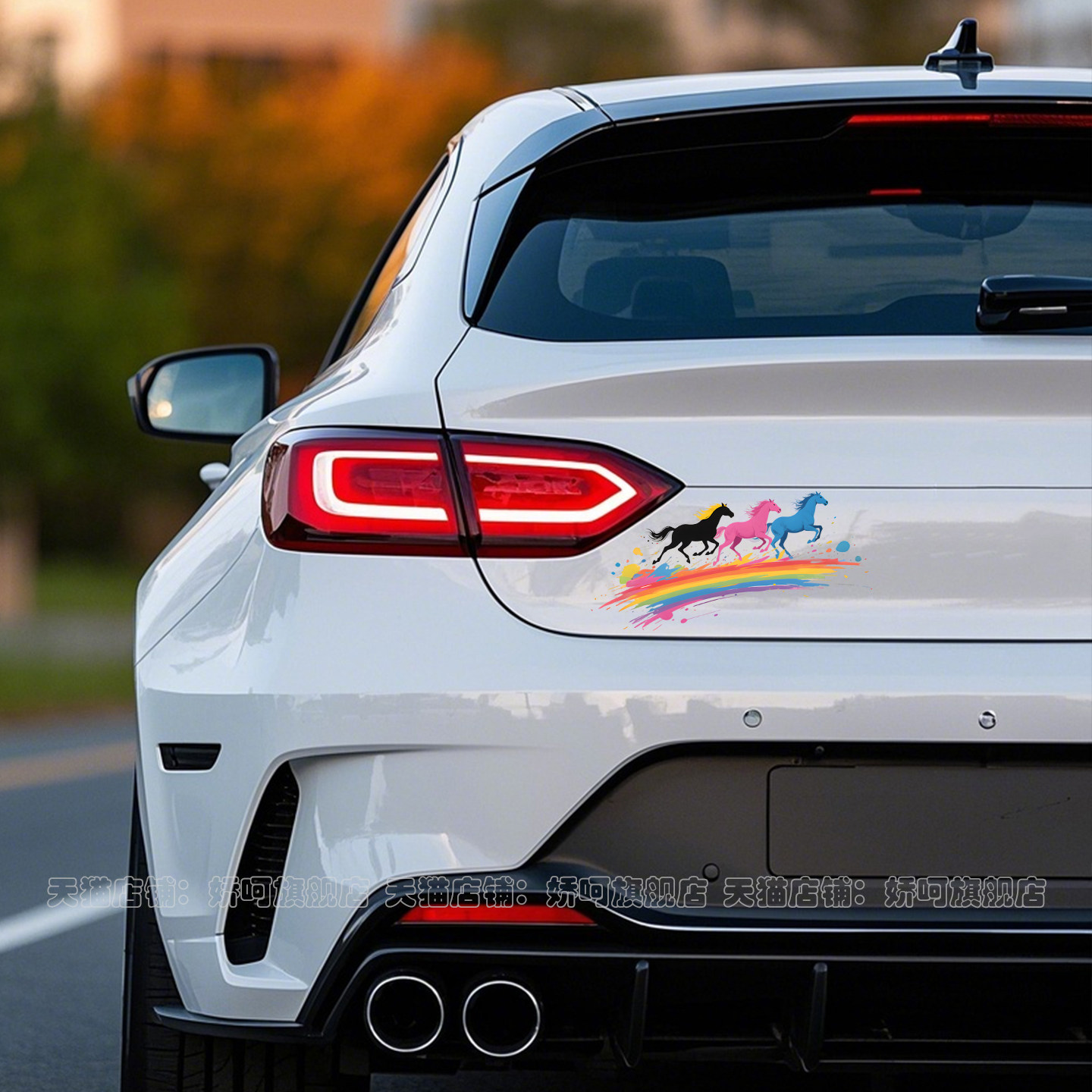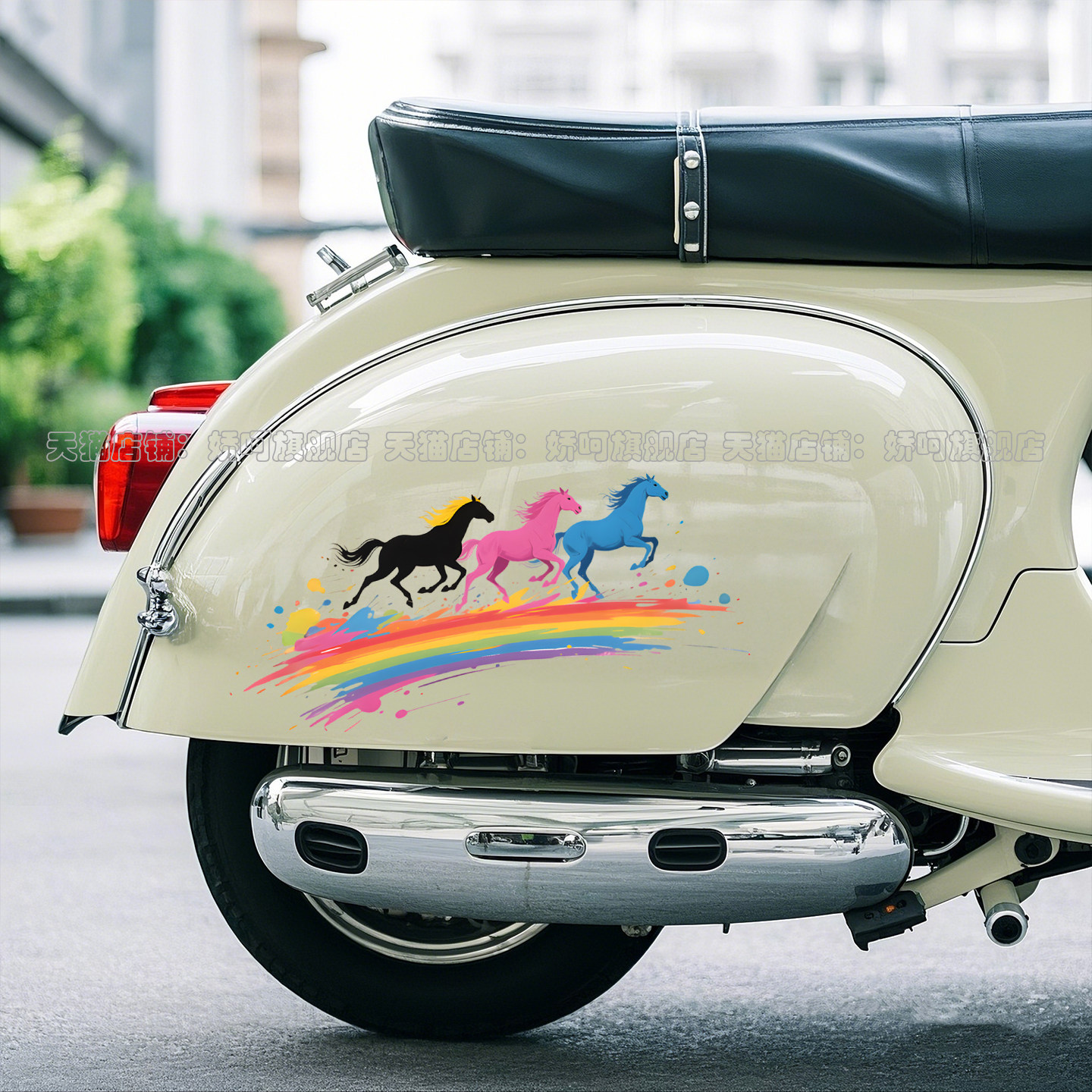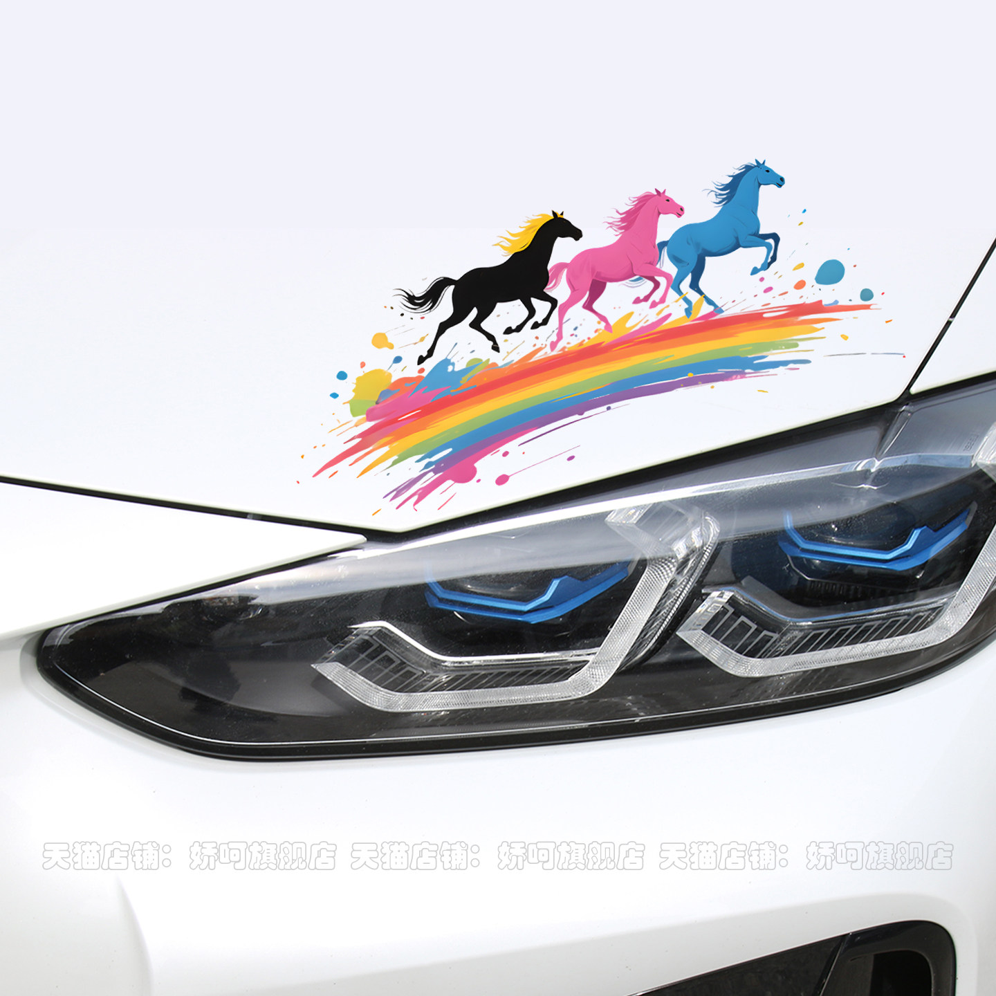 汽车贴纸彩虹马车身划痕遮挡个性创意卡通装饰电动摩托车贴画防水