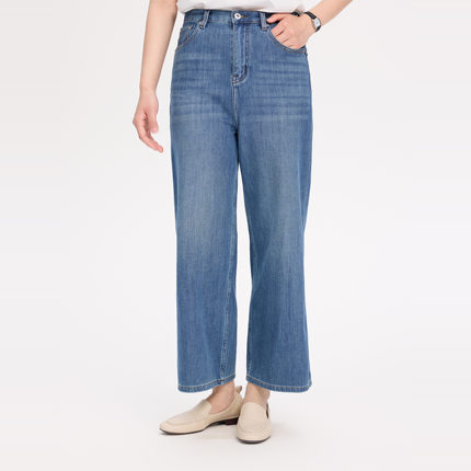 REST HEART 2025春夏新品 高腰四面弹直筒阔腿九分牛仔裤