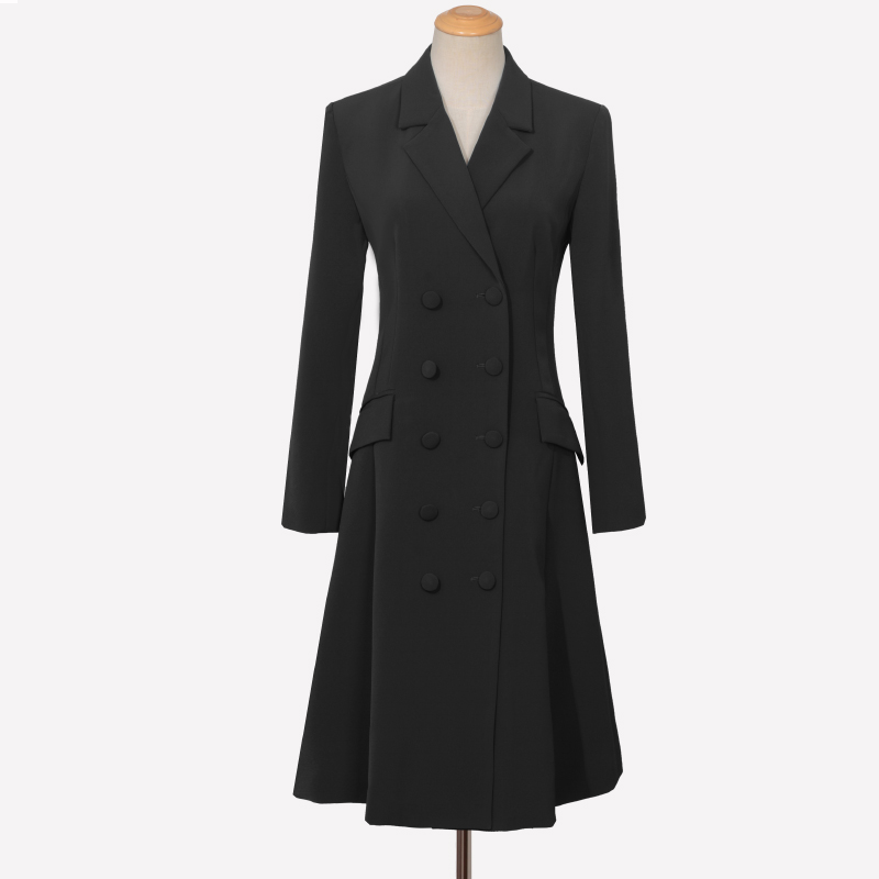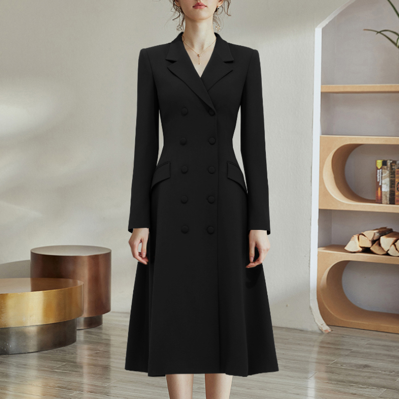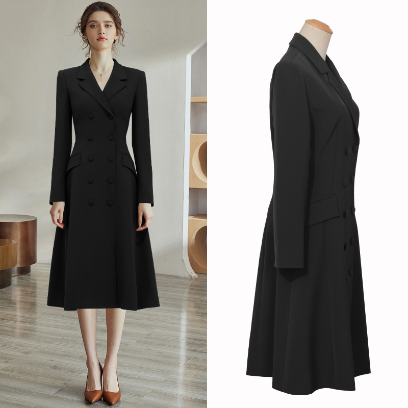 中长款修身西装裙外套A字摆连衣裙双排扣显瘦气质OL法式黑色风衣