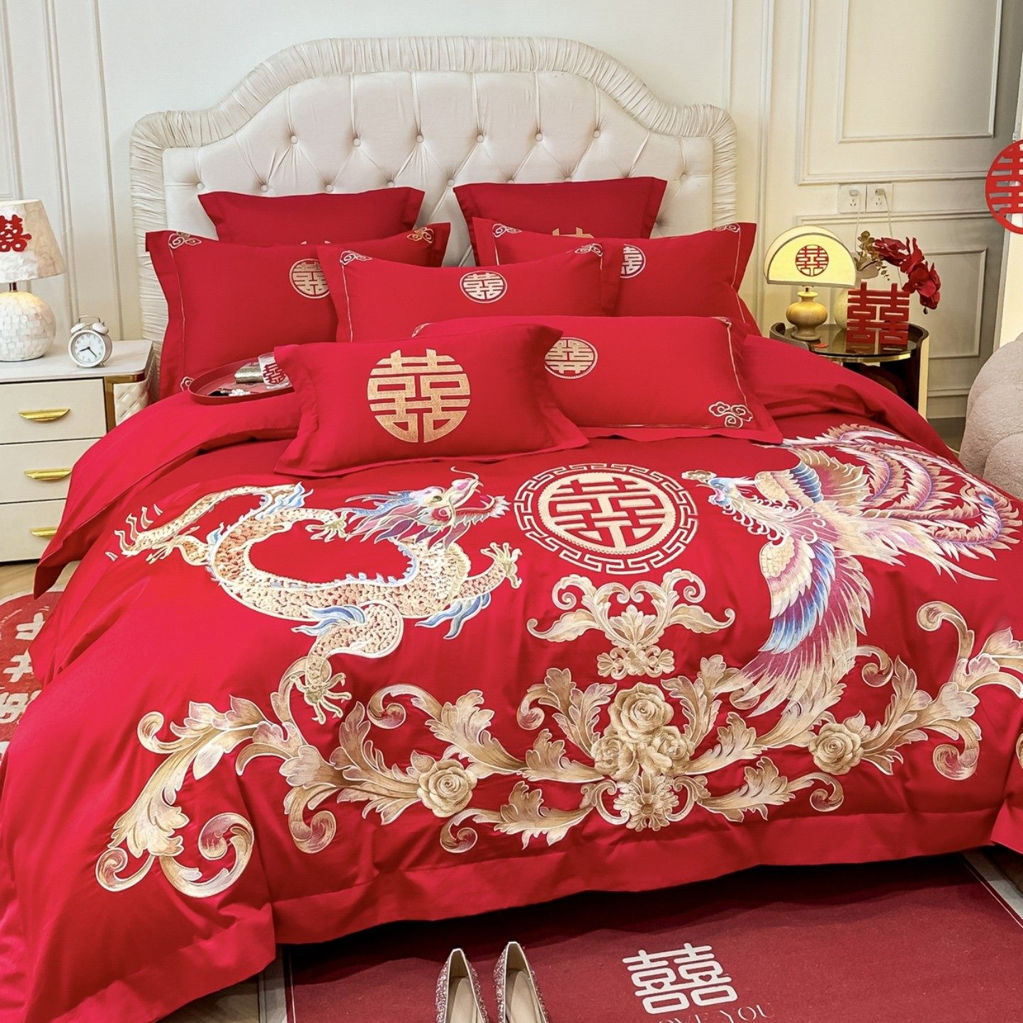 A类160支长绒棉结婚四件套纯棉陪嫁被套红色全棉床单新婚庆床品