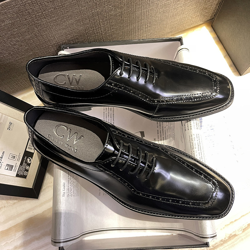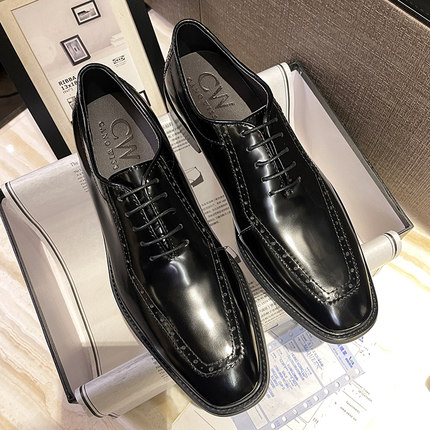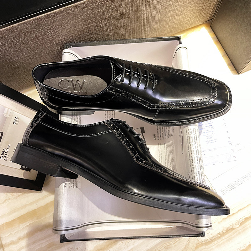 CW高端正装皮鞋男鞋牛津鞋英伦亮皮结婚新郎商务雕花厚底布洛克