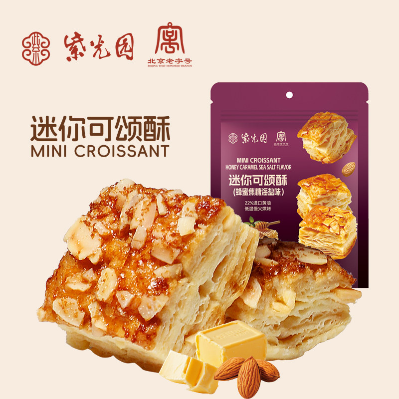 紫光园清真可颂酥蜂蜜焦糖海盐味,香酥浓郁口口爆酥休闲零食~