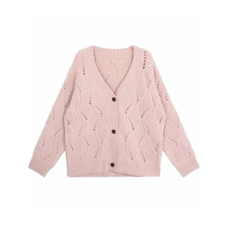 巨好看的韩系早秋穿搭粉色V领麻花毛衣开衫女慵懒风针织外套上衣
