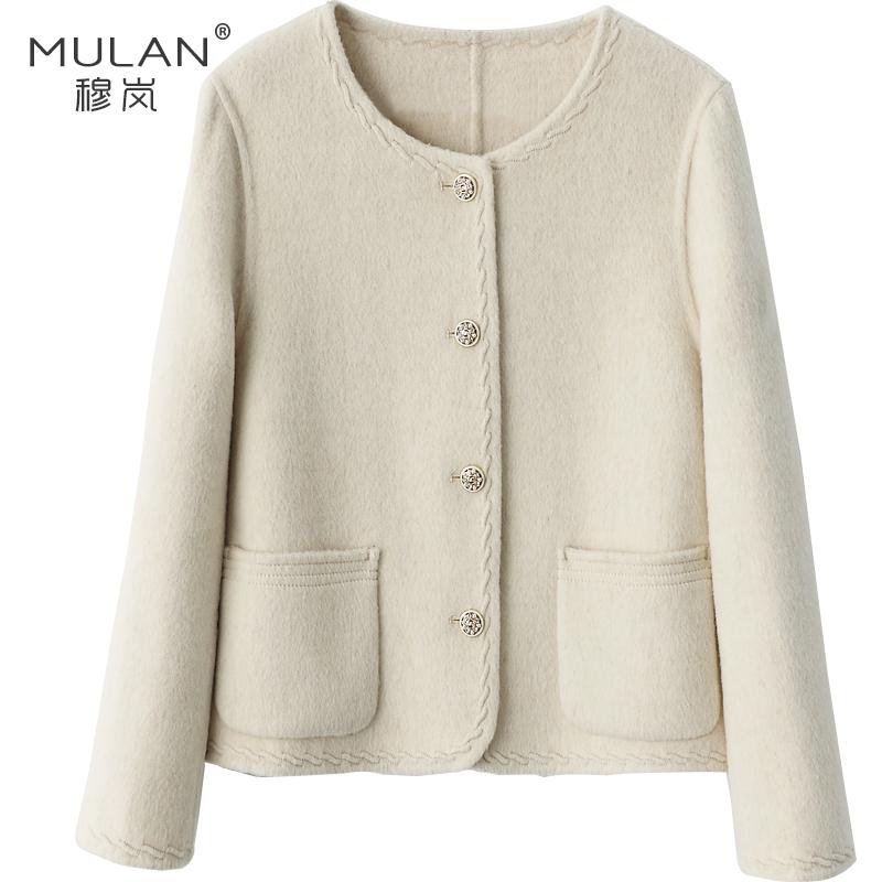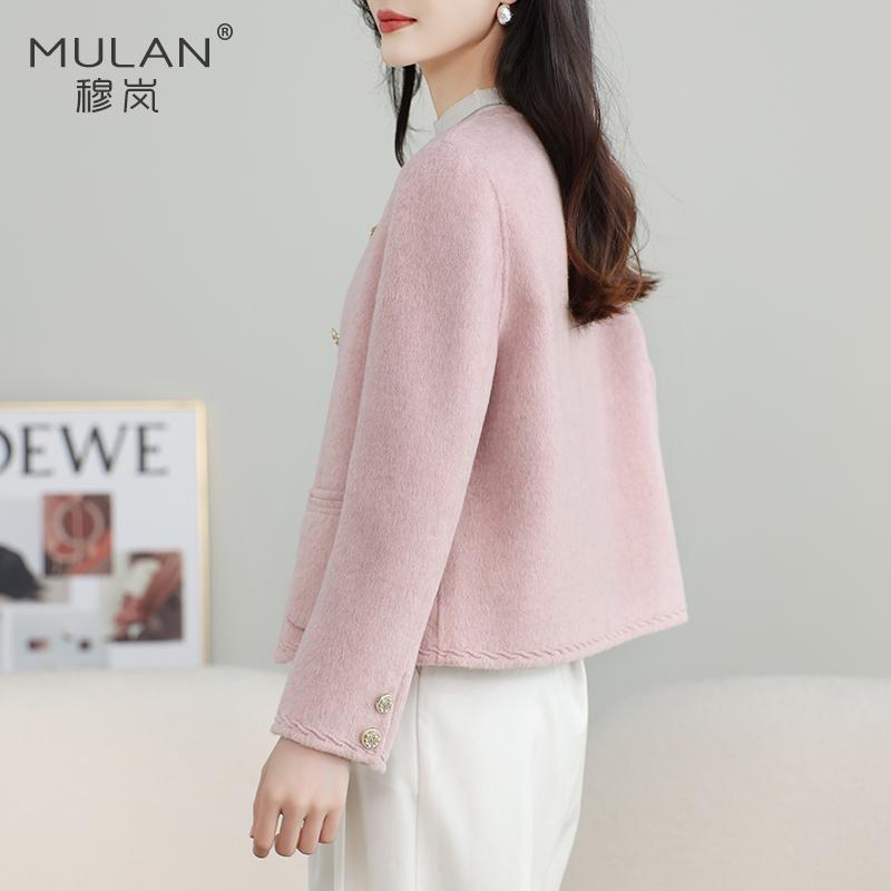 秋冬新短款修身圆领双面羊绒大衣女小个子全羊毛呢小香风粉色外套