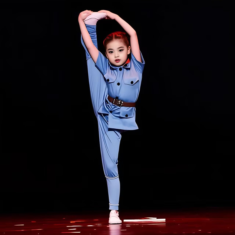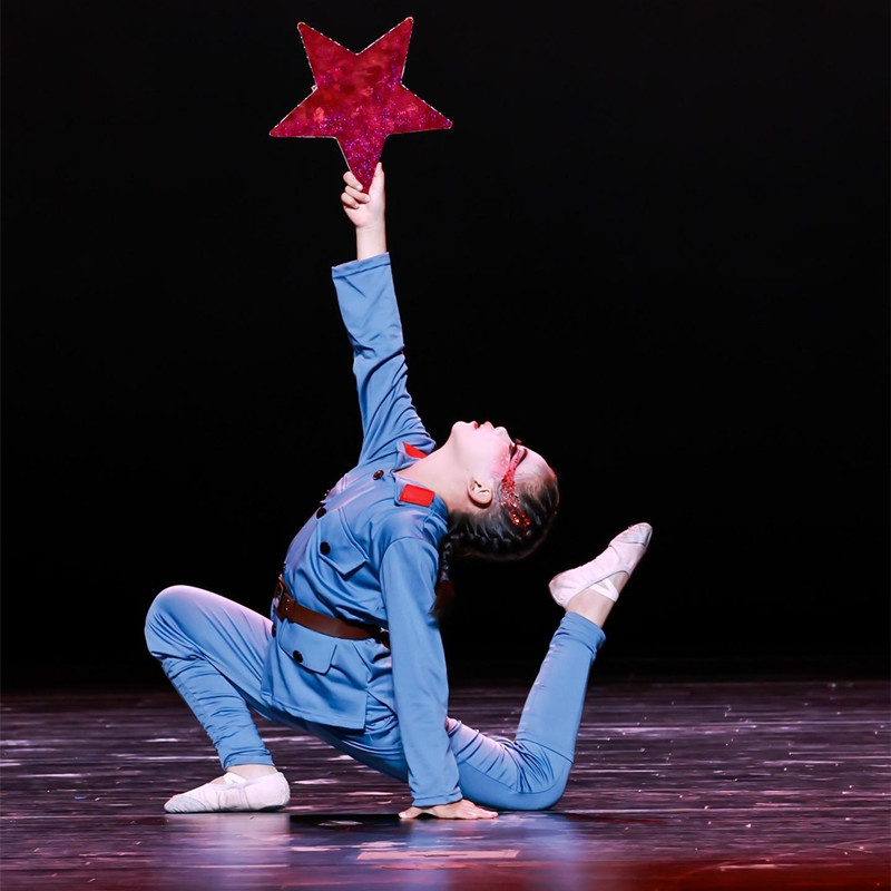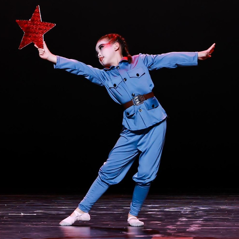 高弹力儿童红军舞蹈服牛奶丝面料
