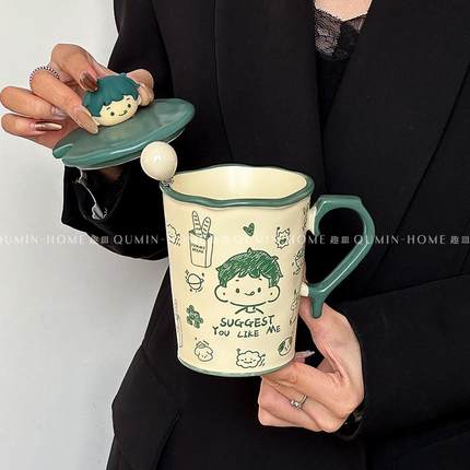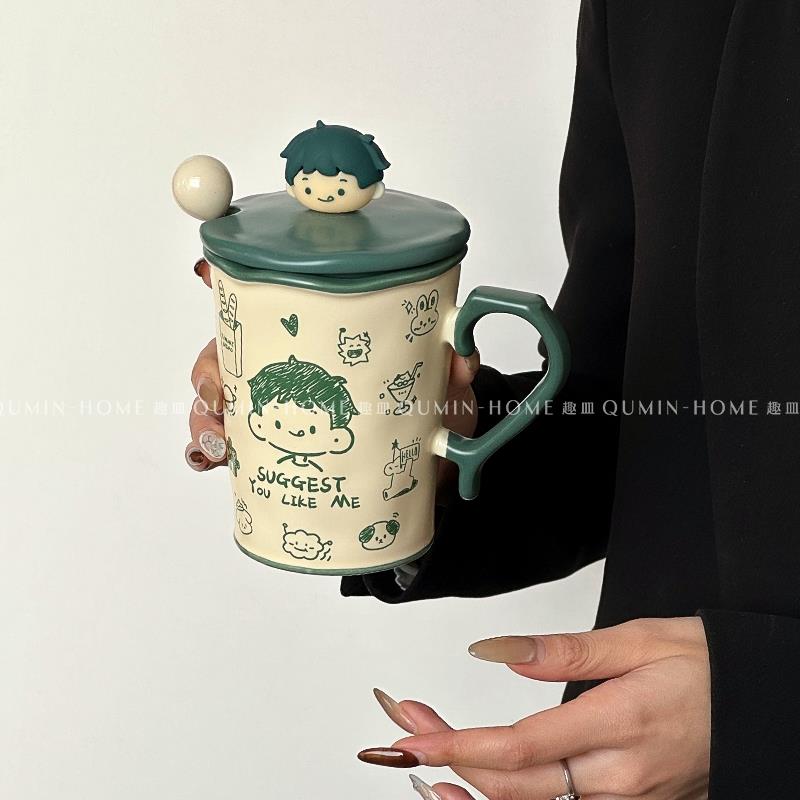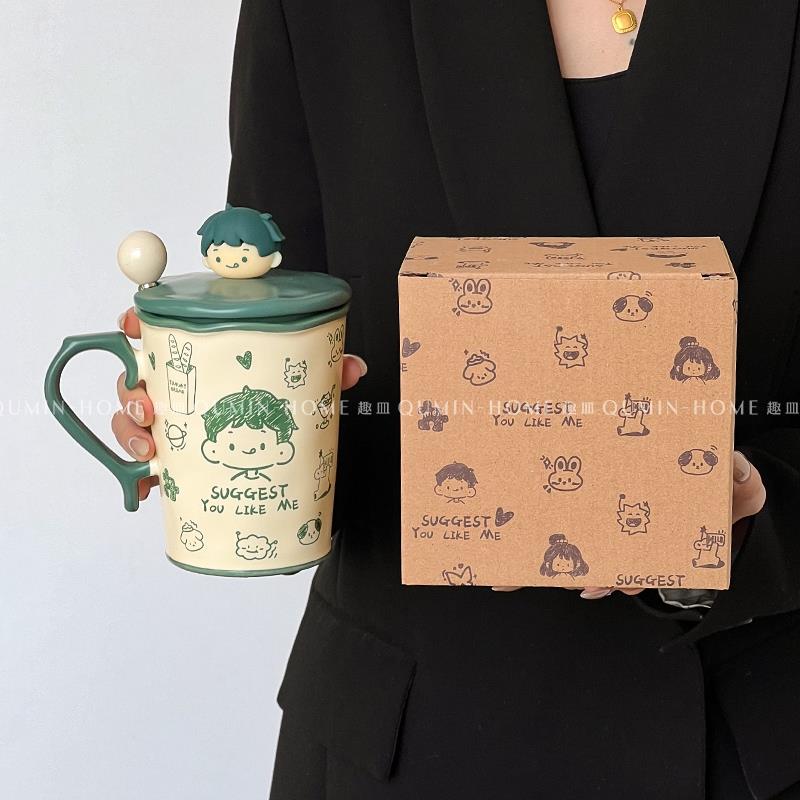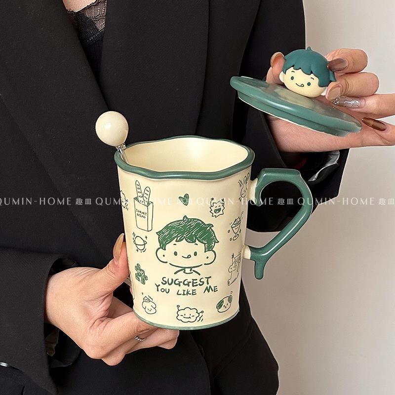 趣皿ins可爱马克杯带盖勺陶瓷杯卡通咖啡杯情侣水杯送男女生礼物