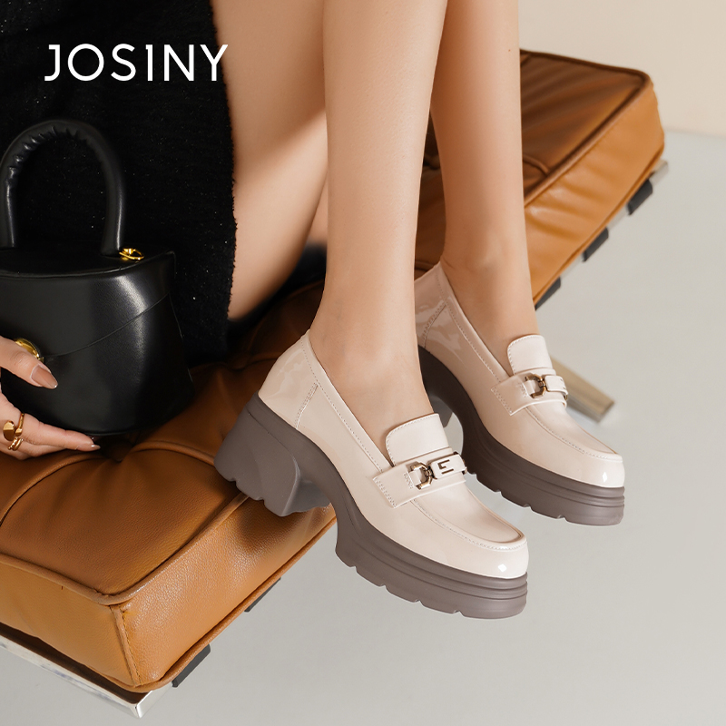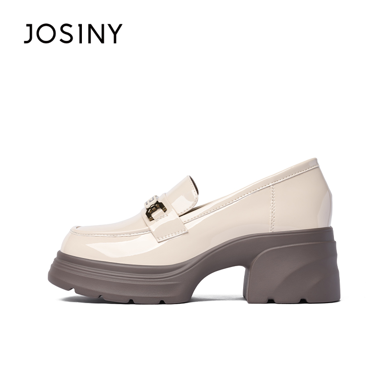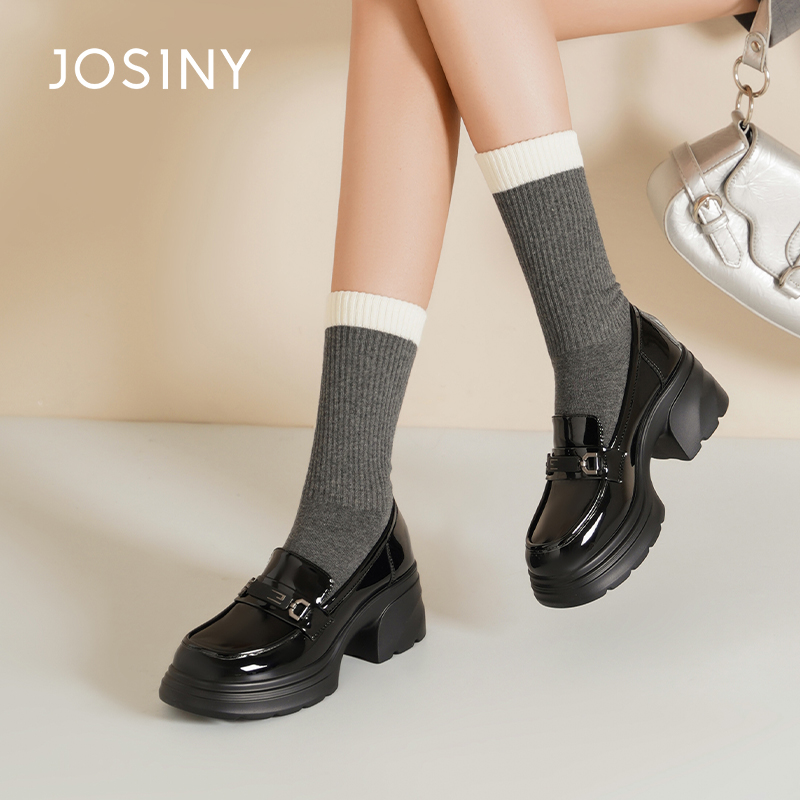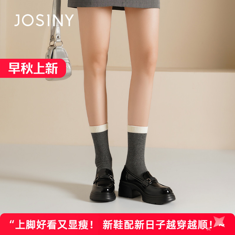 卓诗尼2025年夏季新款厚底粗跟乐福鞋女英伦风黑色高跟单鞋
