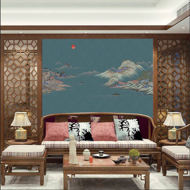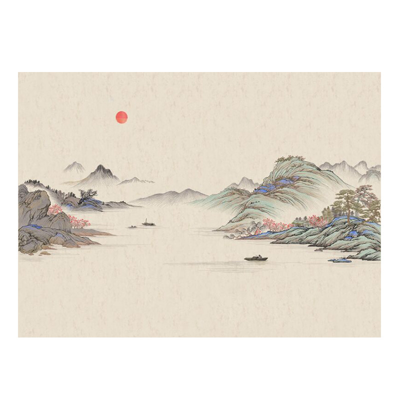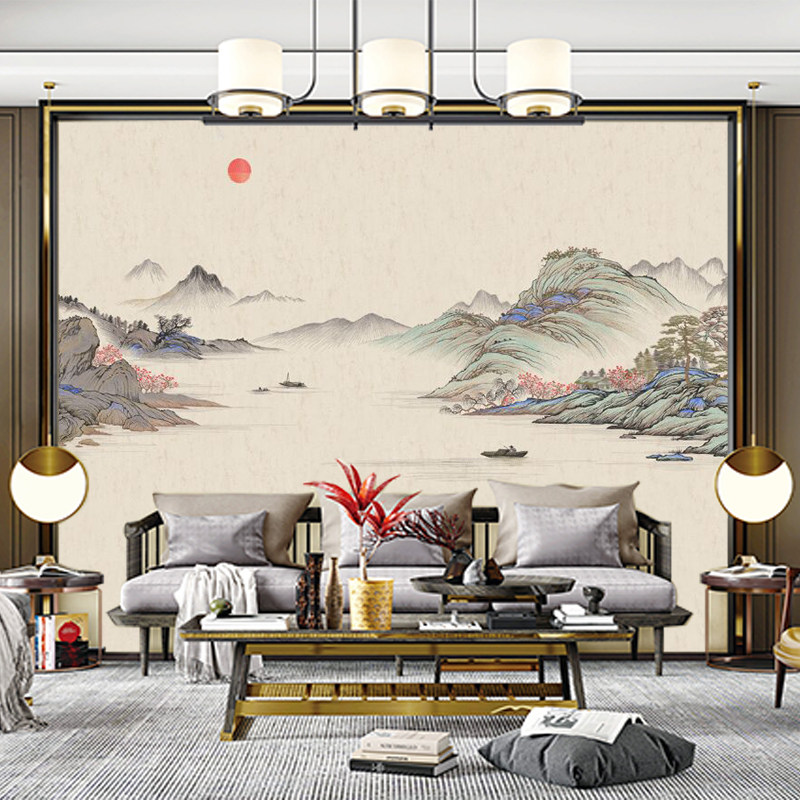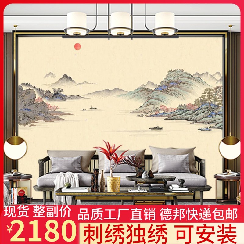 极速独绣山水刺绣壁布墙布刺绣无缝沙发客厅M电视山水独秀背景墙