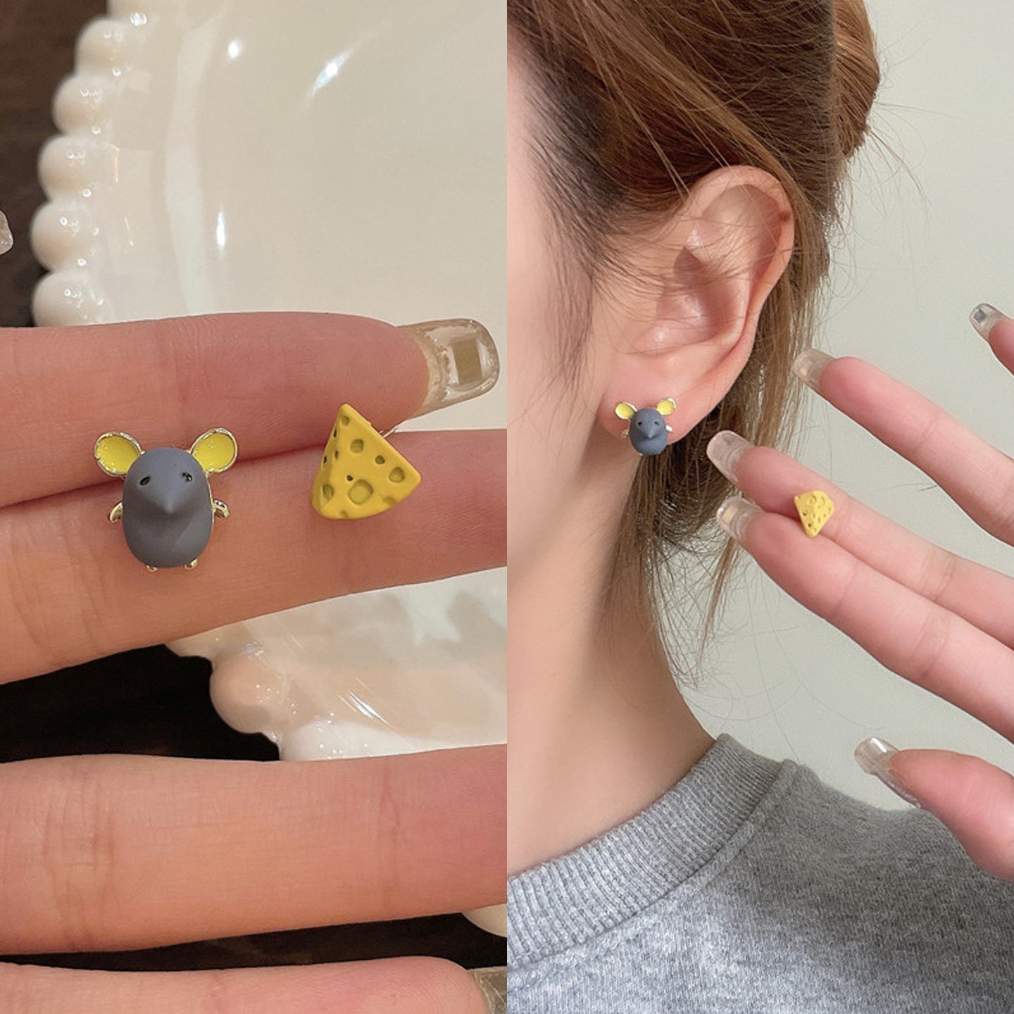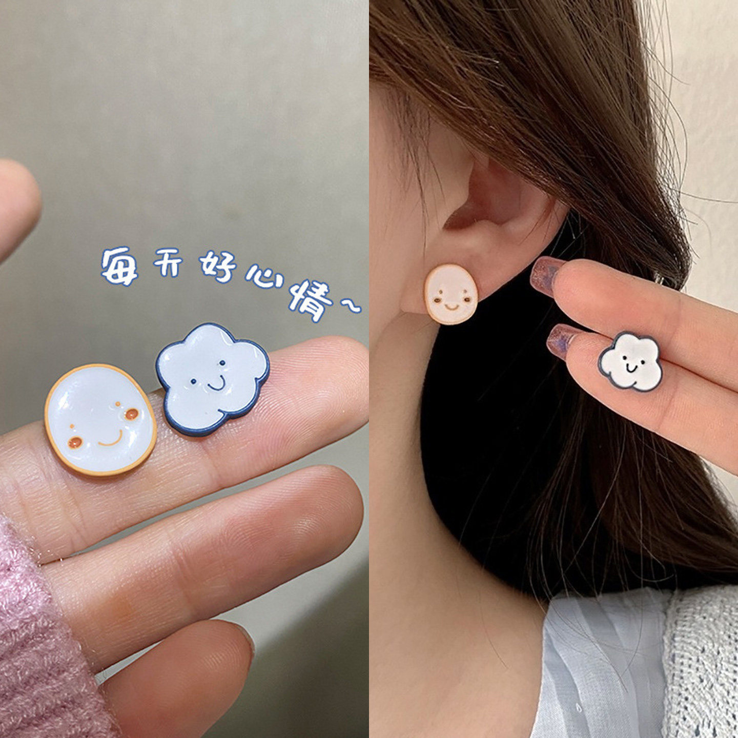 趣味可爱不对称软萌耳钉女