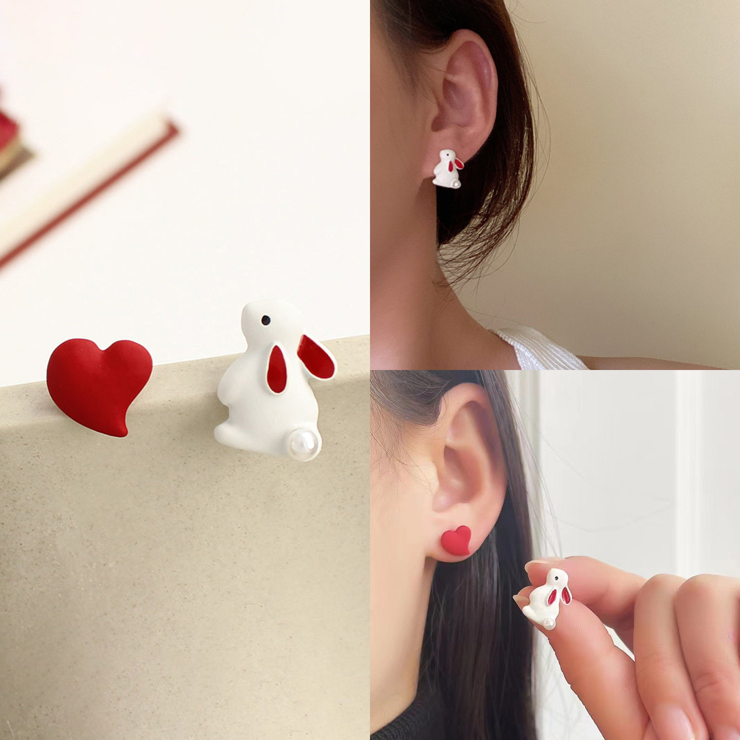 可爱不对称红心小兔耳钉笑脸云朵耳环甜美老鼠芝士猫咪花朵耳饰女