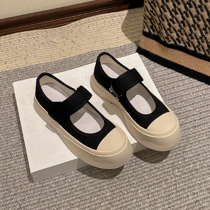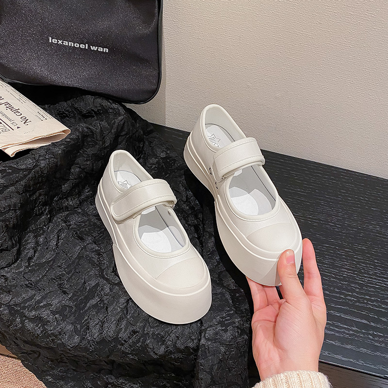 赵露思同款法式玛丽珍女鞋丑萌大头帆布小白鞋厚底魔术贴春夏单鞋
