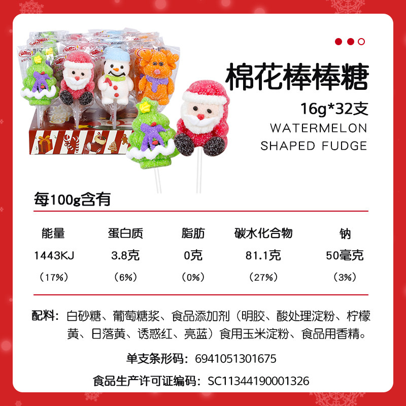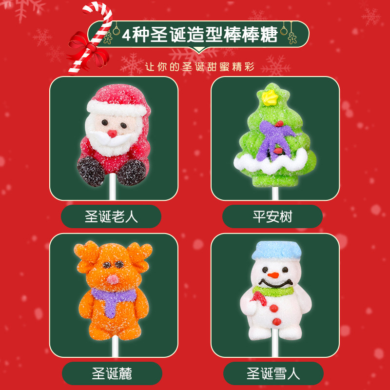 圣诞节糖果棉花糖棒棒糖儿童小零食散装软糖节日礼物食品网红可爱