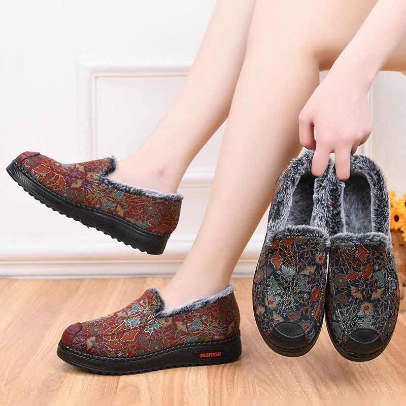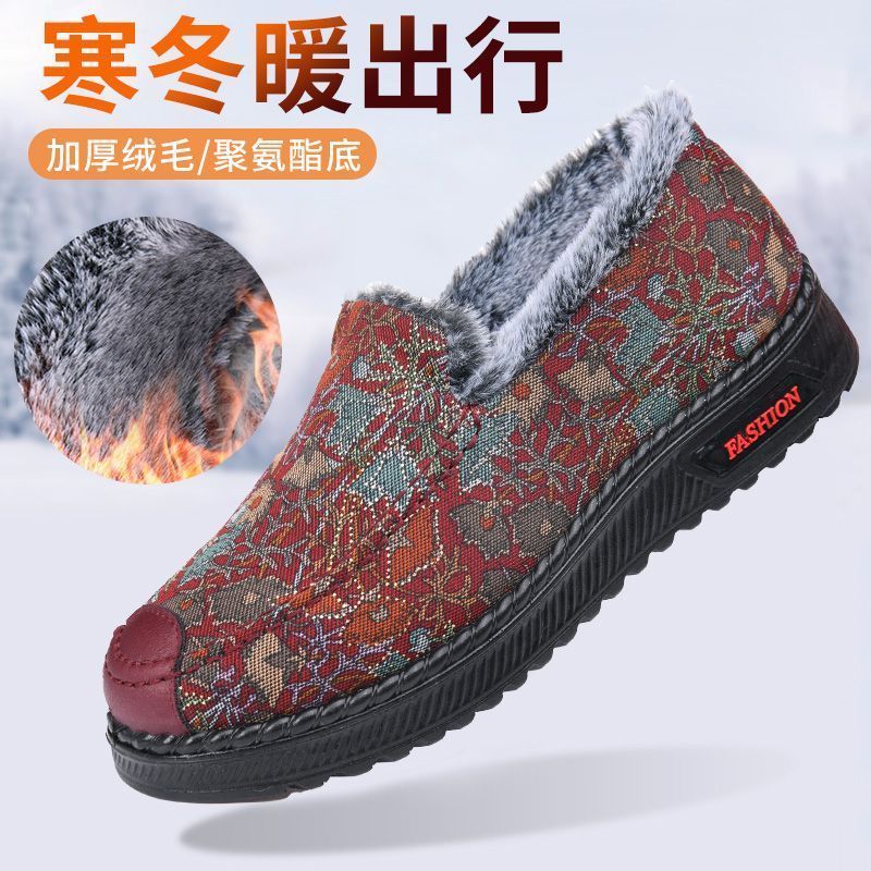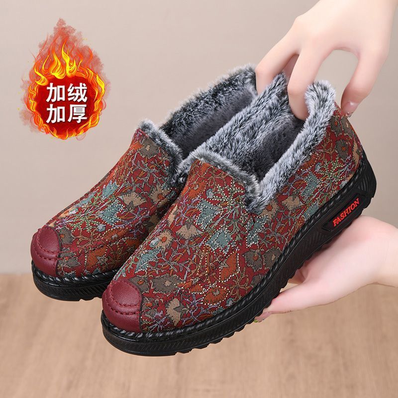 2025冬季加绒加厚妈妈靴老北京布鞋防寒保暖中老年一脚蹬奶奶棉鞋