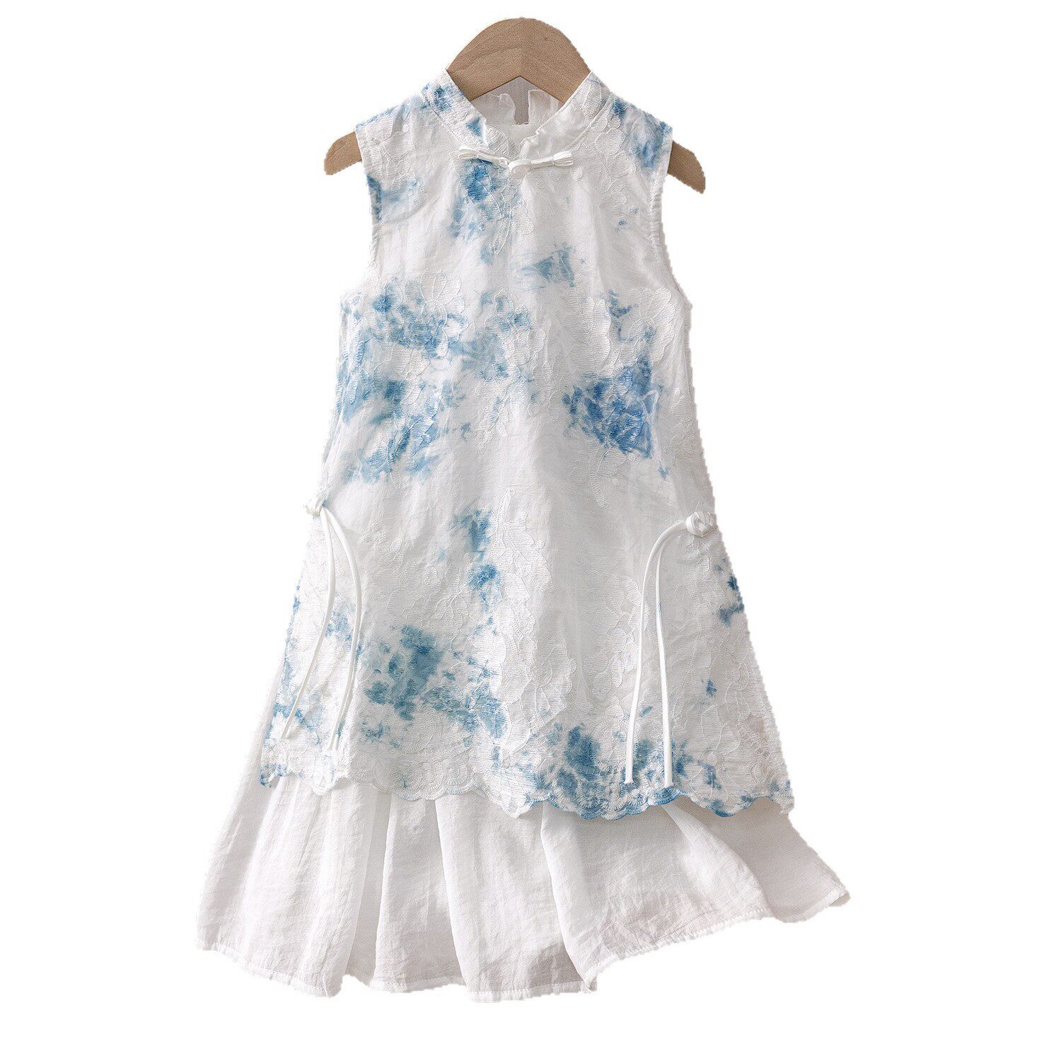 女童古法扎染刺绣旗袍裙夏季