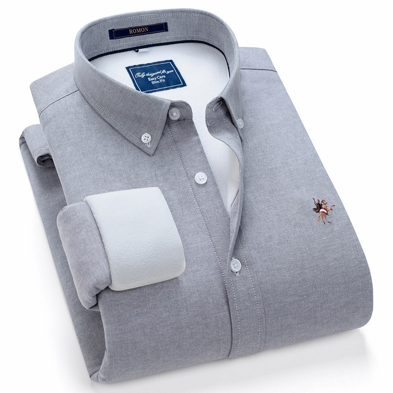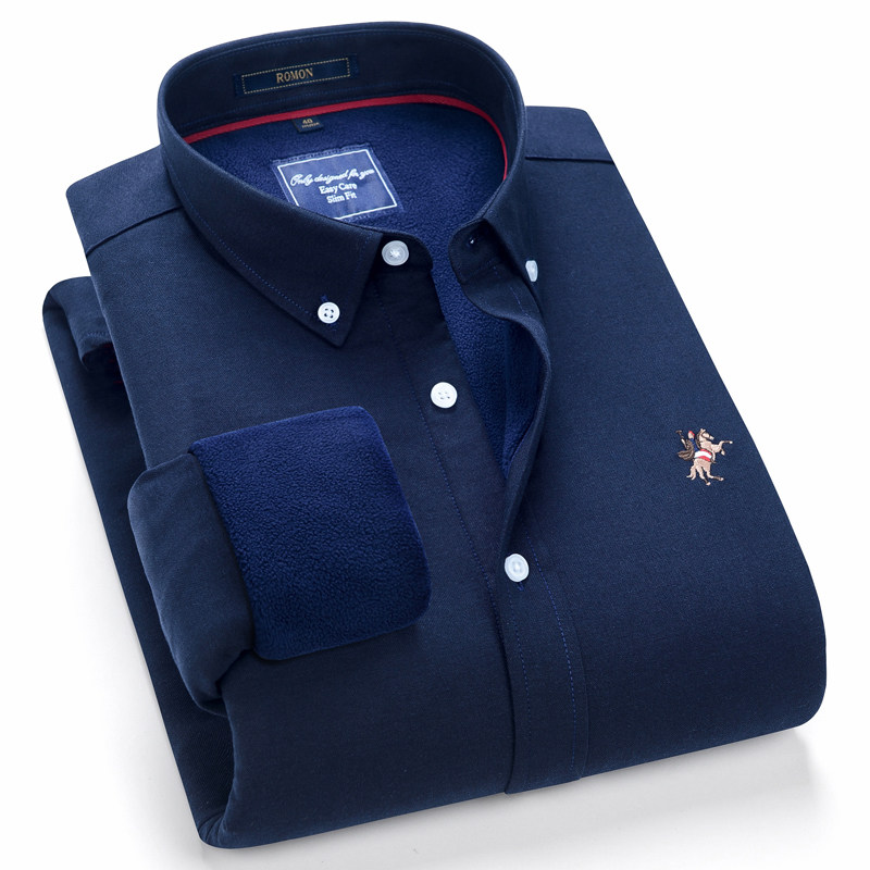罗蒙衬衫男士长袖秋冬季加绒加厚商务正装职业免烫衬衣保暖寸衫男