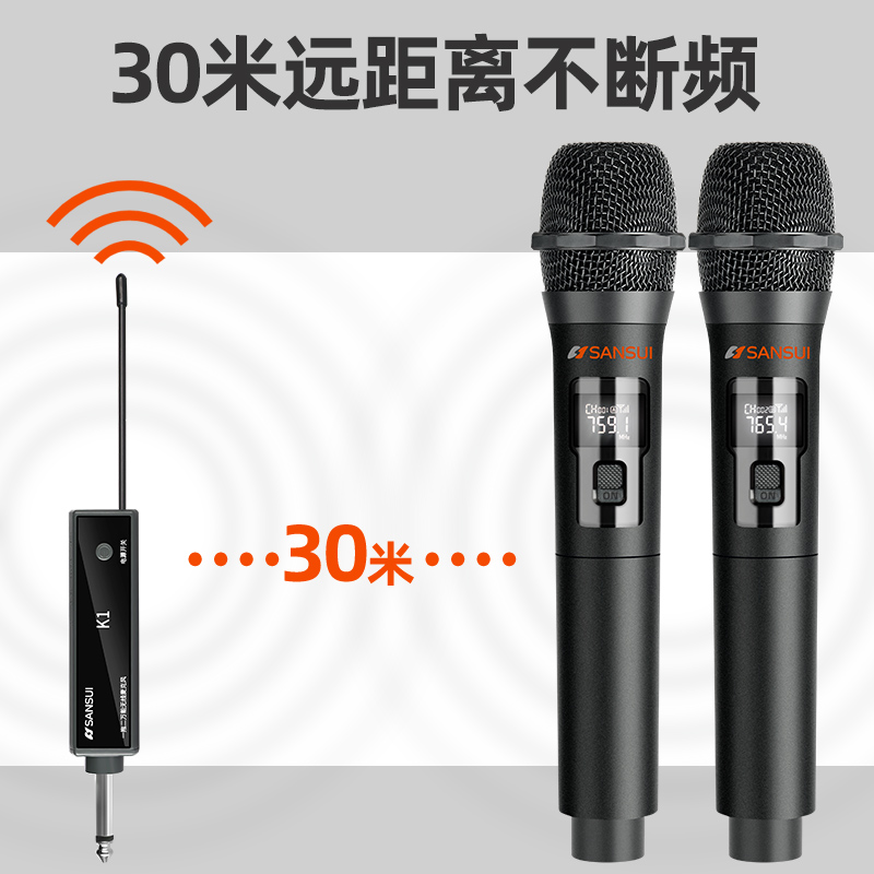 Sansui/山水家用无线话筒充电麦克风U段调频Ktv专用K歌卡拉OK会议
