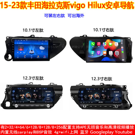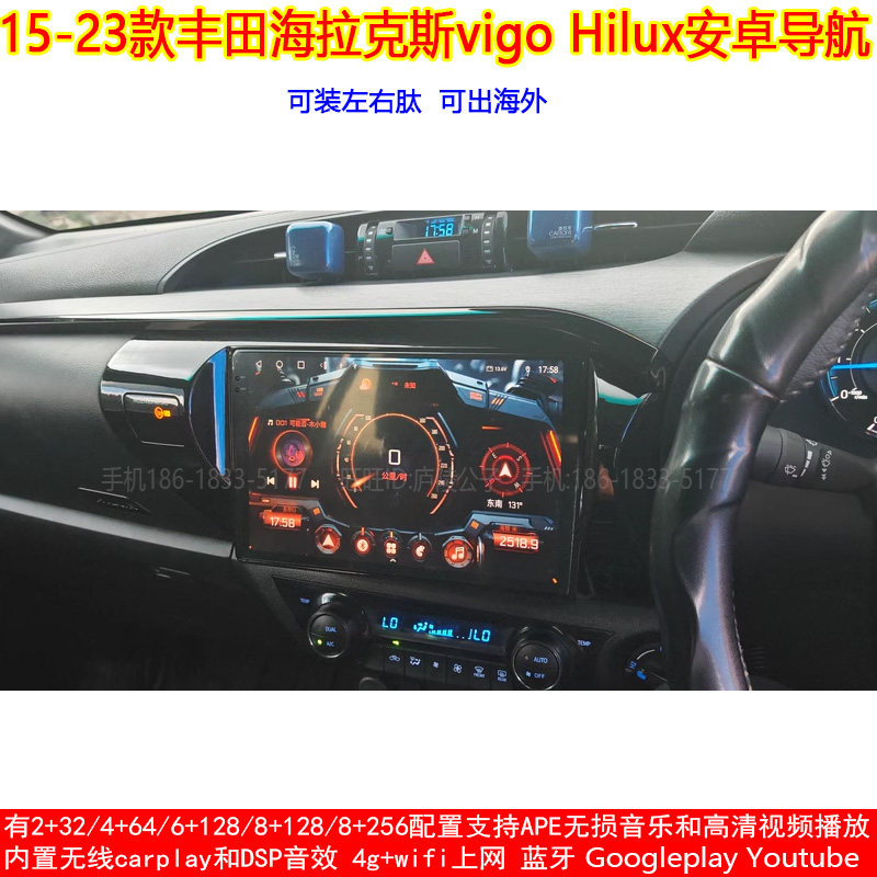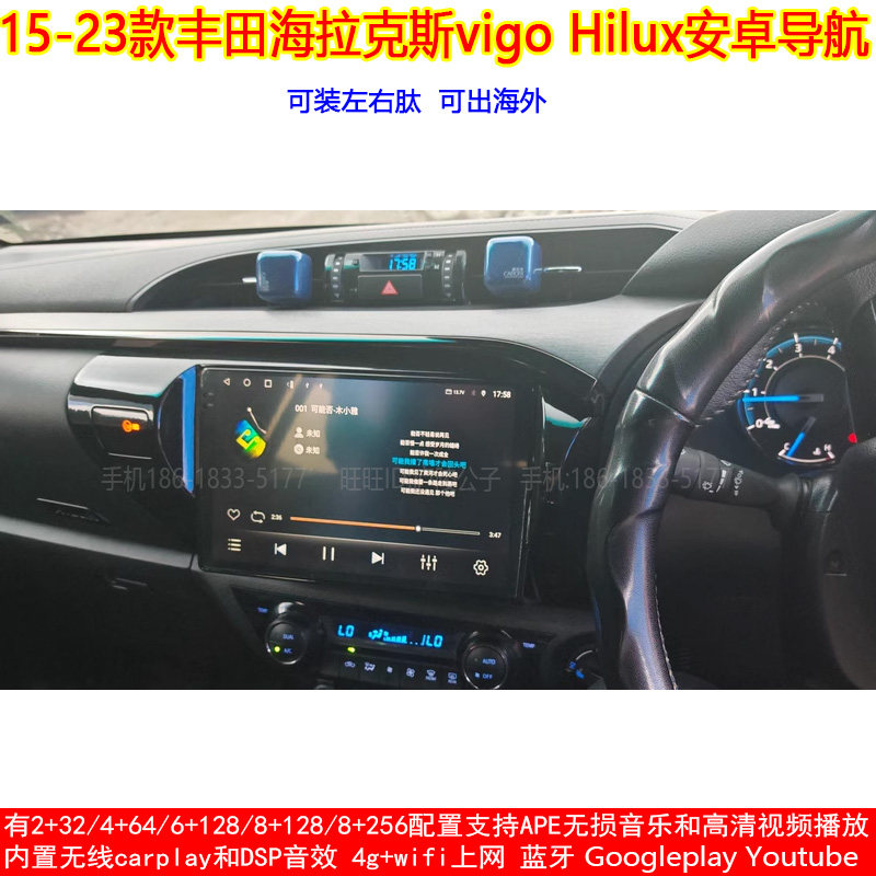 适用15-23款丰田海拉克斯vigo Hilux安卓车机智能中控大屏导航仪