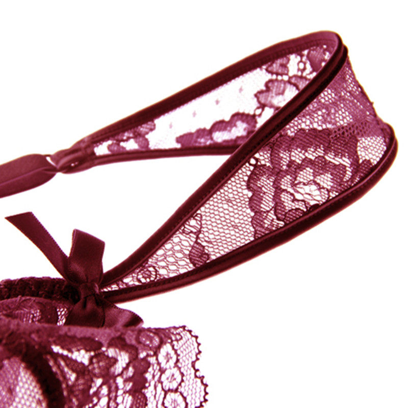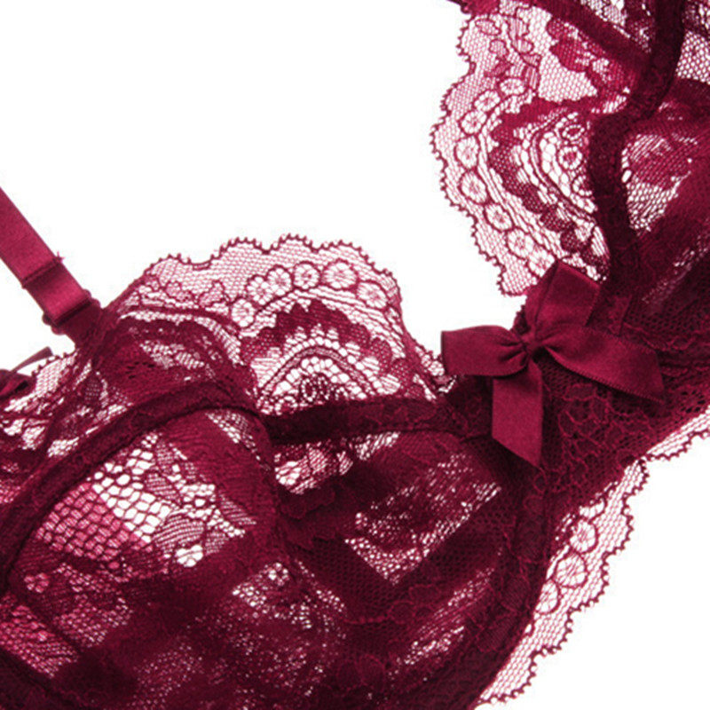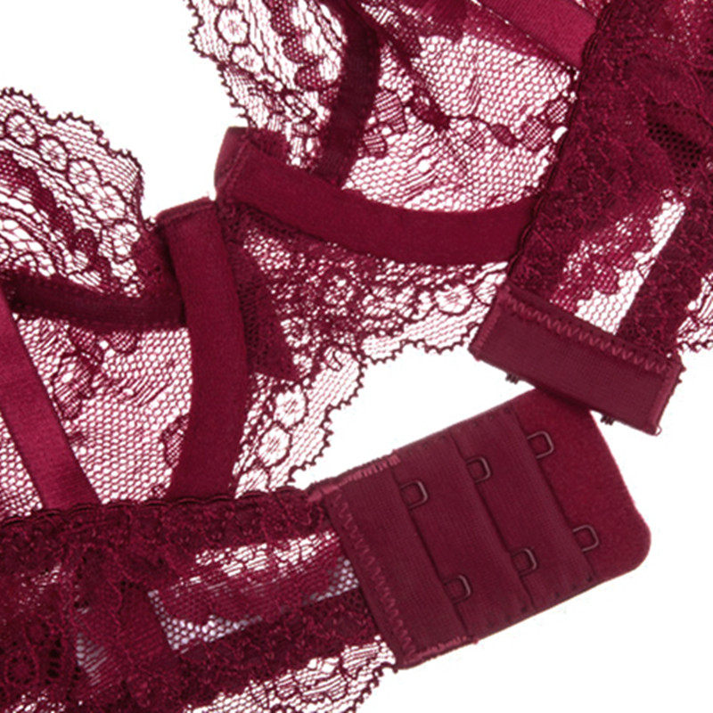 性感蕾丝文胸套装超薄款不聚拢调整型上托透明胸罩大码内衣D杯