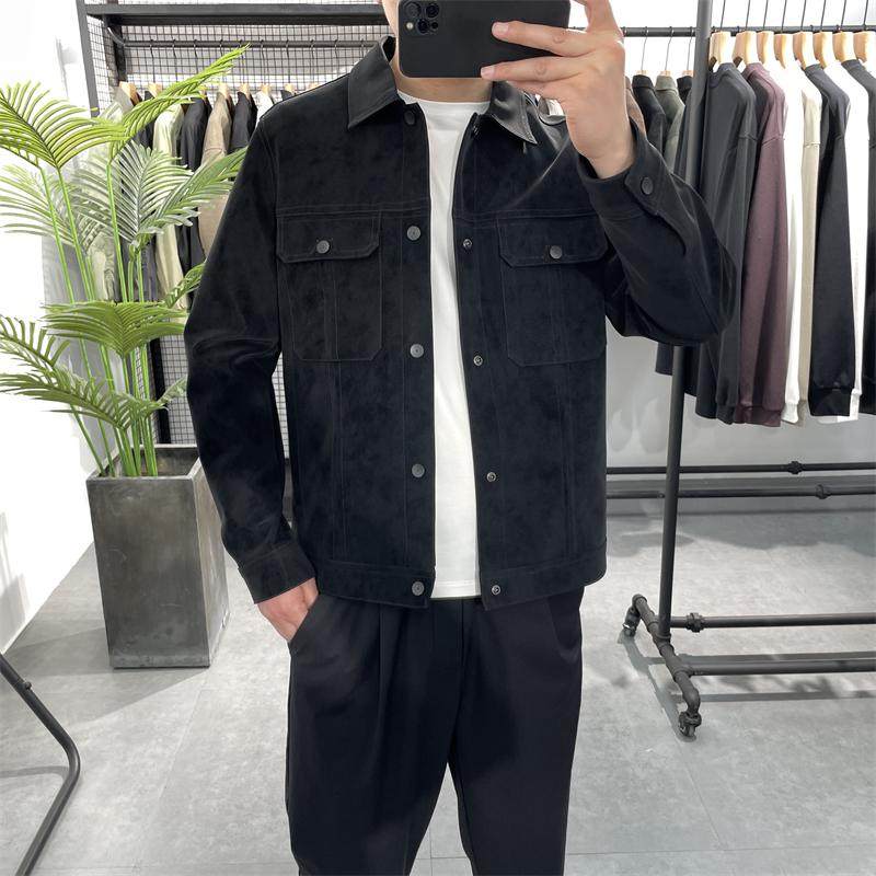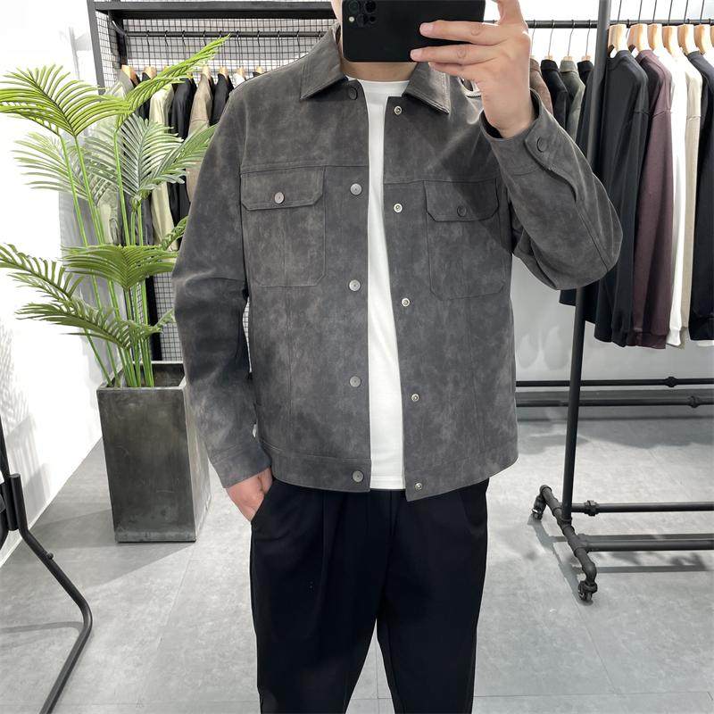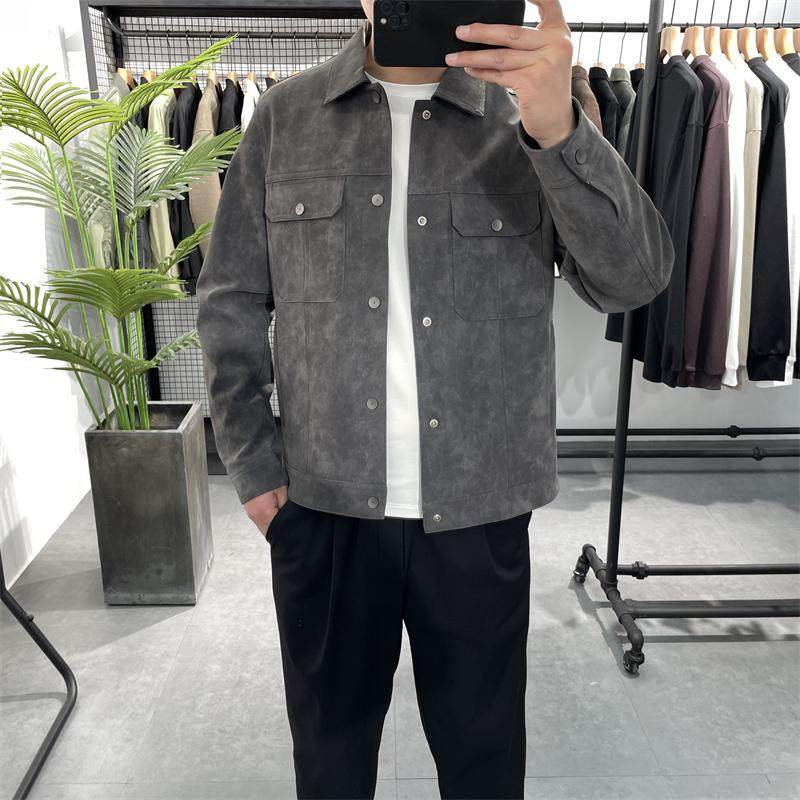 冬季新款翻领皮衣男韩版百搭休闲工装外套PU皮夹克轻奢茄克衫上衣
