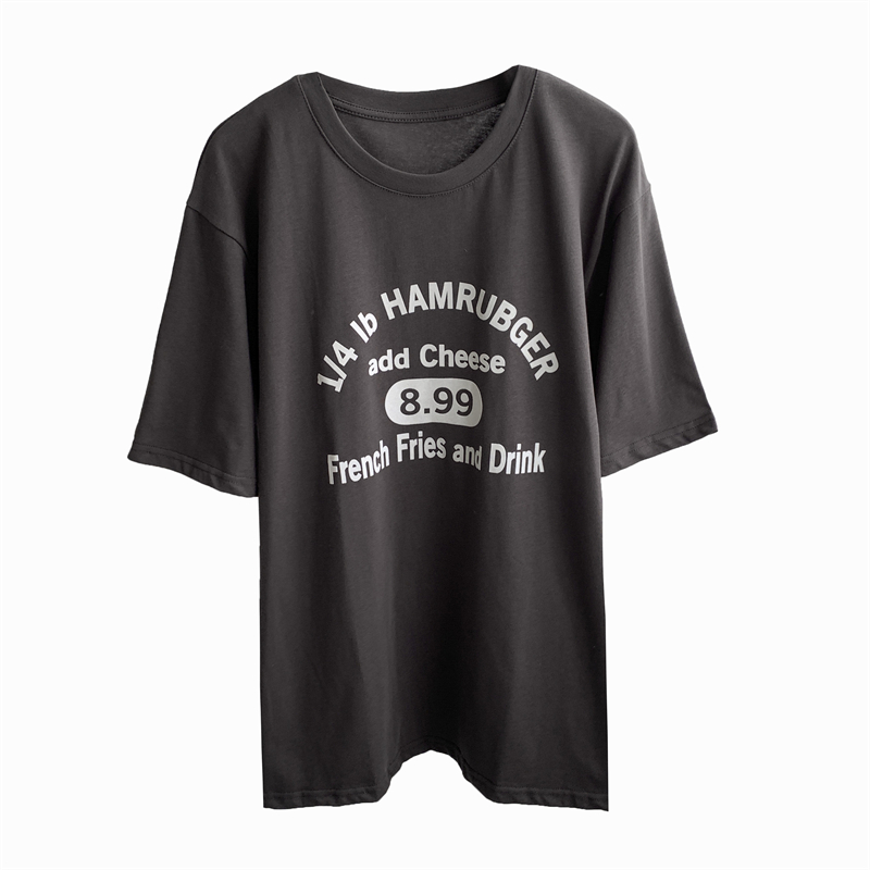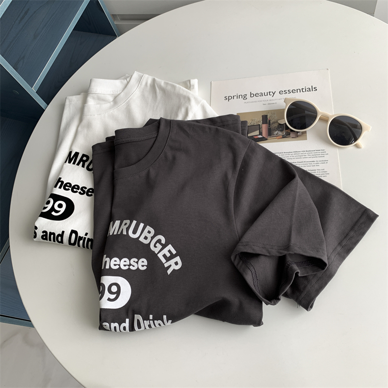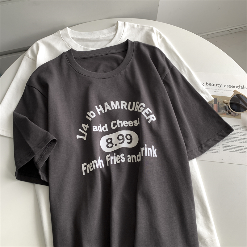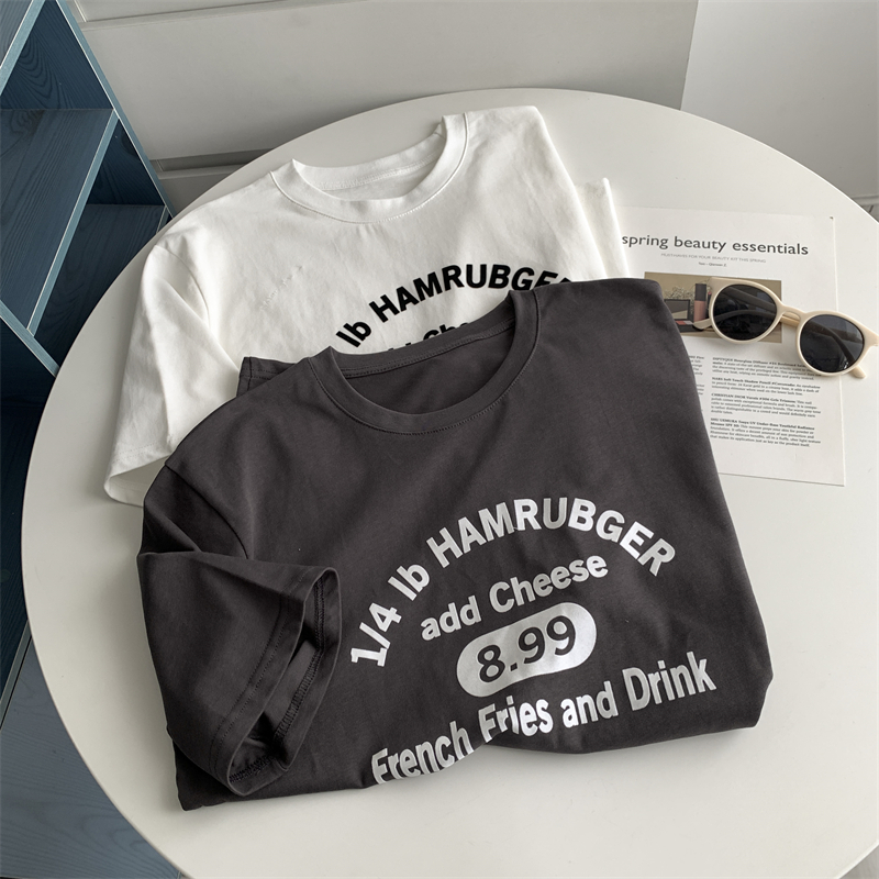 纯色港风全棉植绒字母宽松短袖T恤女2025夏季新款宽松百搭上衣女