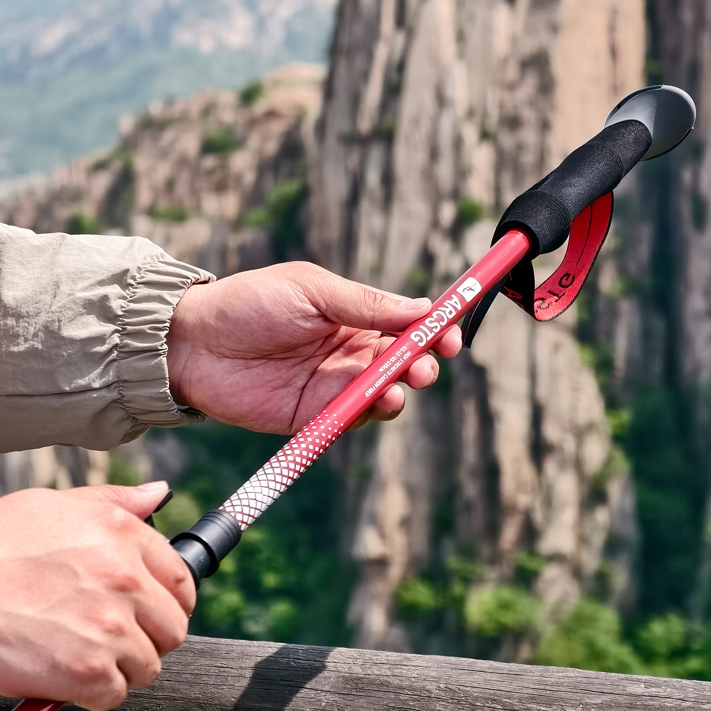 ARCSTG登山杖手杖碳纤维超轻折叠伸缩拐杖专业户外徒步装备爬山棍