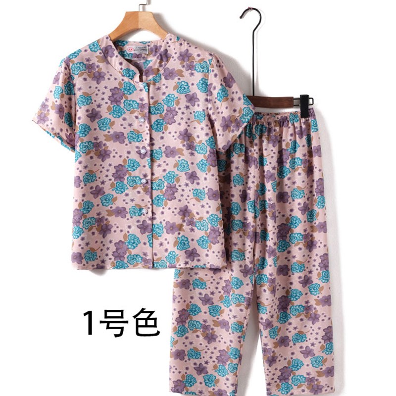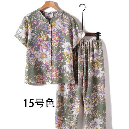 妈妈装夏装套装两件套中老年女装短袖上衣老年人奶奶装衣服老太太