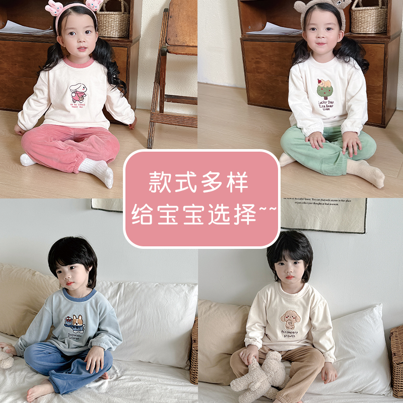 儿童睡衣男孩冬季保暖男童家居服套装秋冬款加厚海岛绒宝宝春秋款