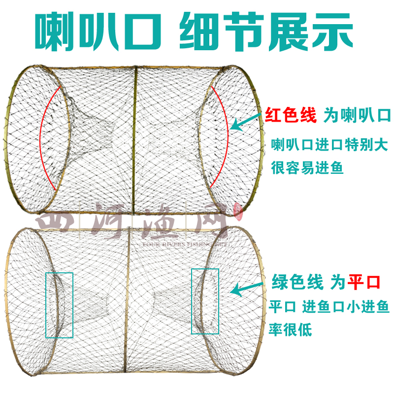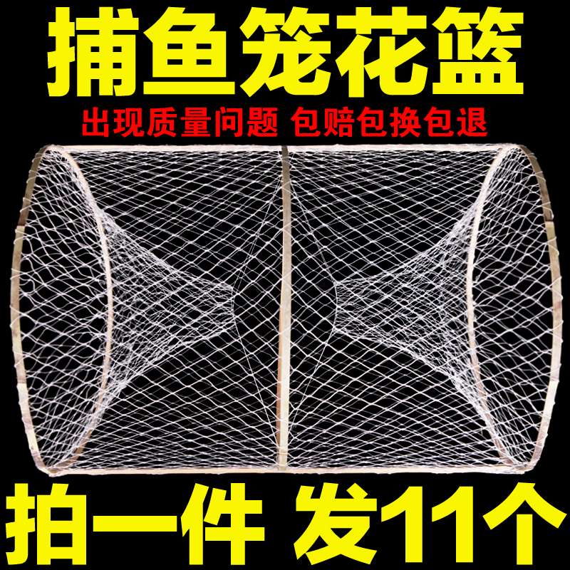 捕鱼花篮自动折叠圆形竹笼两头通鱼篮黑鱼笼鲫鱼笼甲鱼笼鳖笼渔网