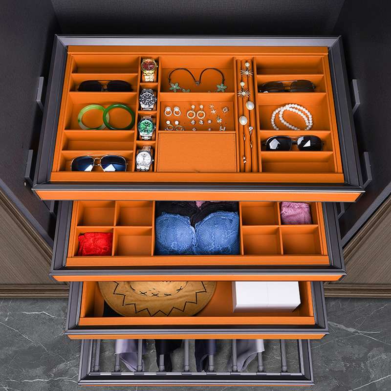 衣柜拉篮抽屉式首饰盒抽拉裤架内置衣帽间伸缩格子抽滑轨五金配件