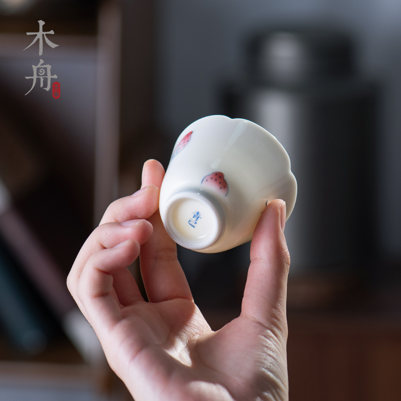 青己玉瓷釉下彩品茗杯青花手绘熊猫杯陶瓷茶杯主人杯单杯功夫茶具