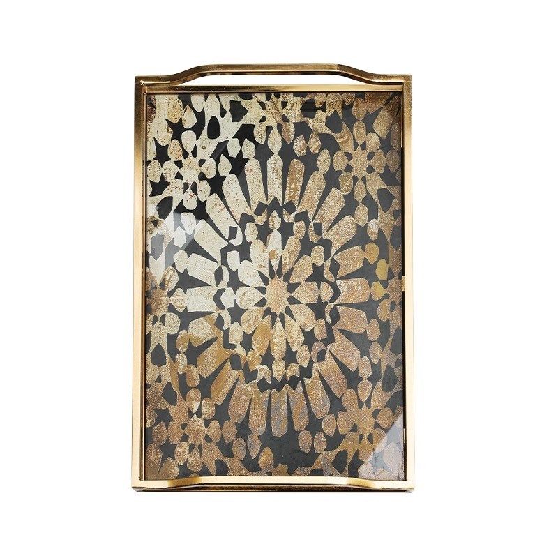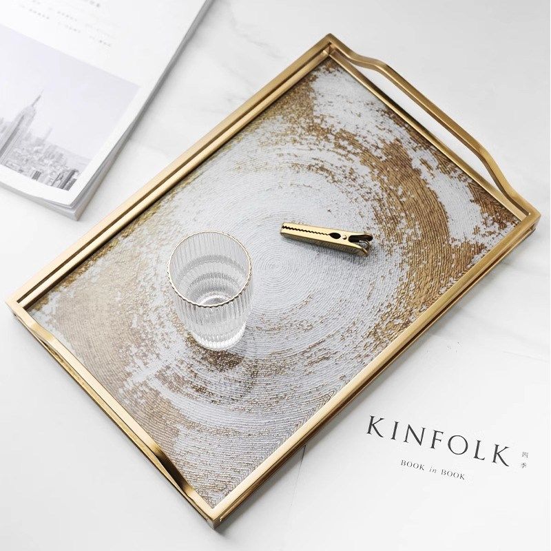 欧式轻奢玻璃收纳托盘果盘长方形茶盘高级感装饰盘家用水杯置物盘