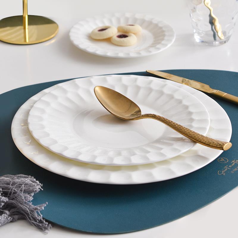 牛排盘子纯白陶瓷浮雕西餐盘子家用菜盘碟子浅盘平盘凉菜碟子餐具