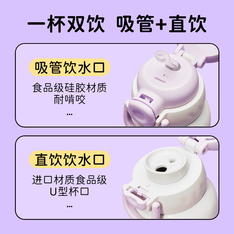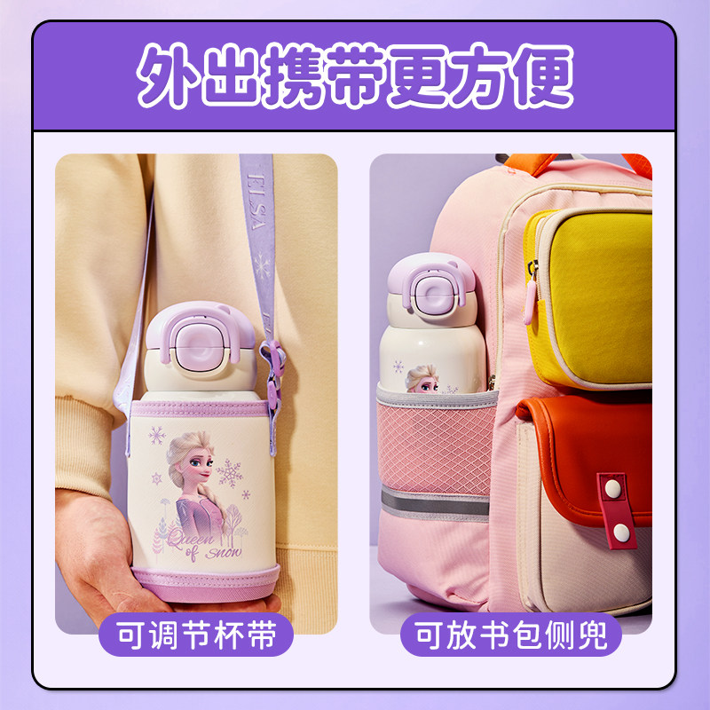 迪士尼儿童保温杯女孩吸管水杯食品级幼儿园宝宝上学专用杯子水壶