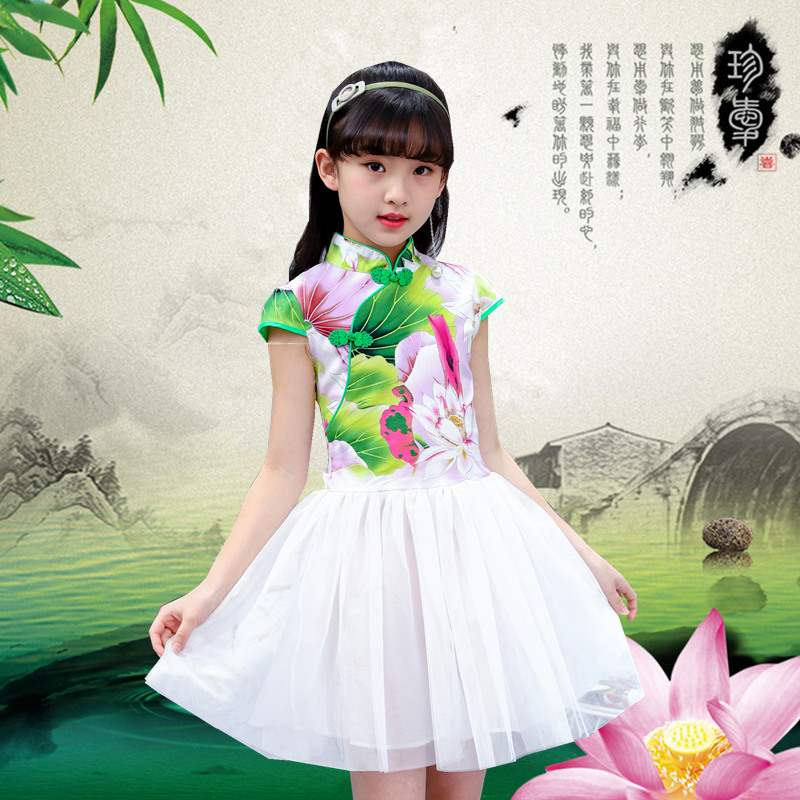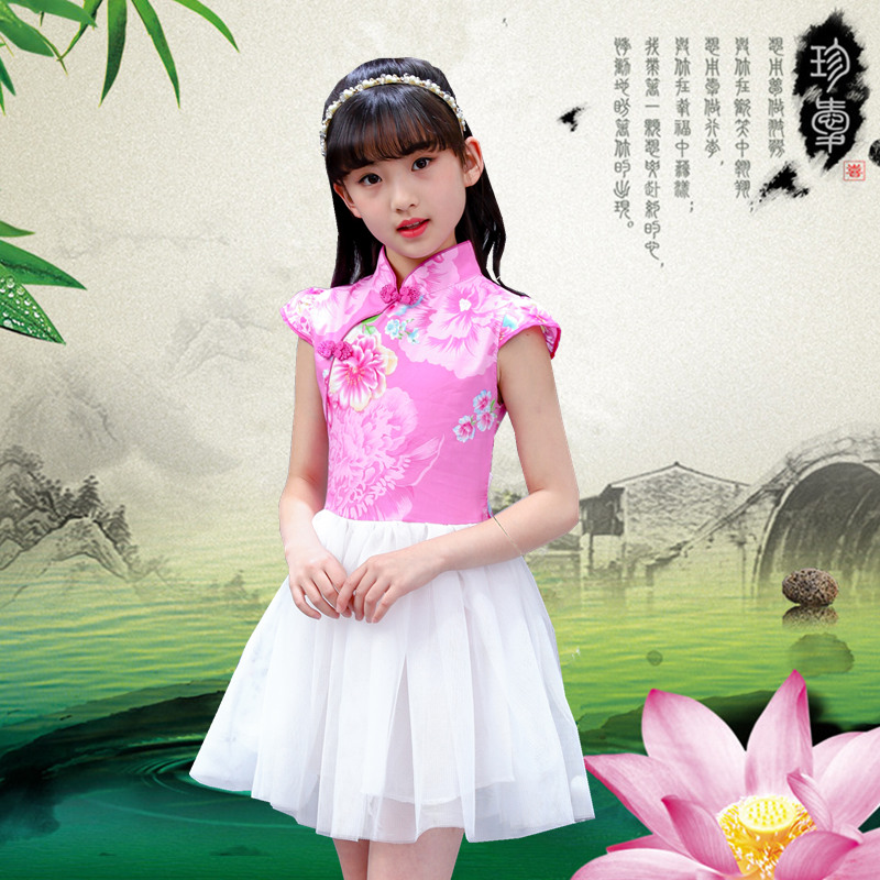 魔法蜡笔24年春夏新款儿童连衣裙沙沙裙蓬蓬裙民族风旗袍裙子洋气