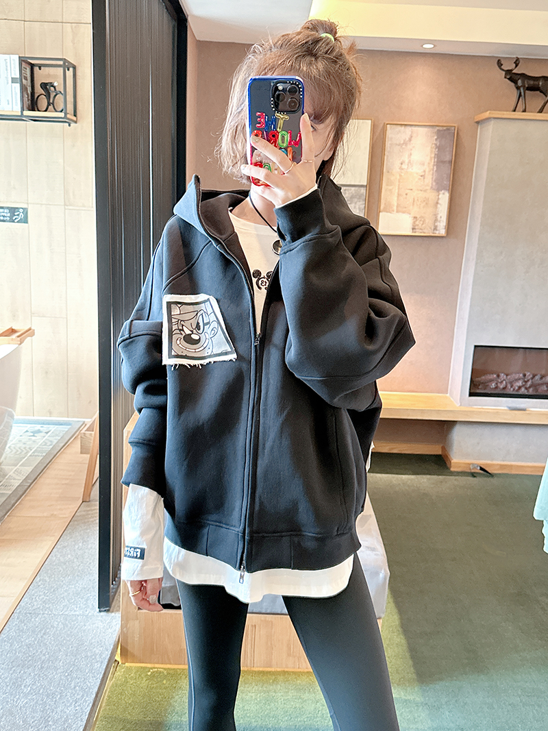 AMYOYOJA韩国新款 2023秋季简约风纯棉刺绣贴标宽松百搭打底T恤女