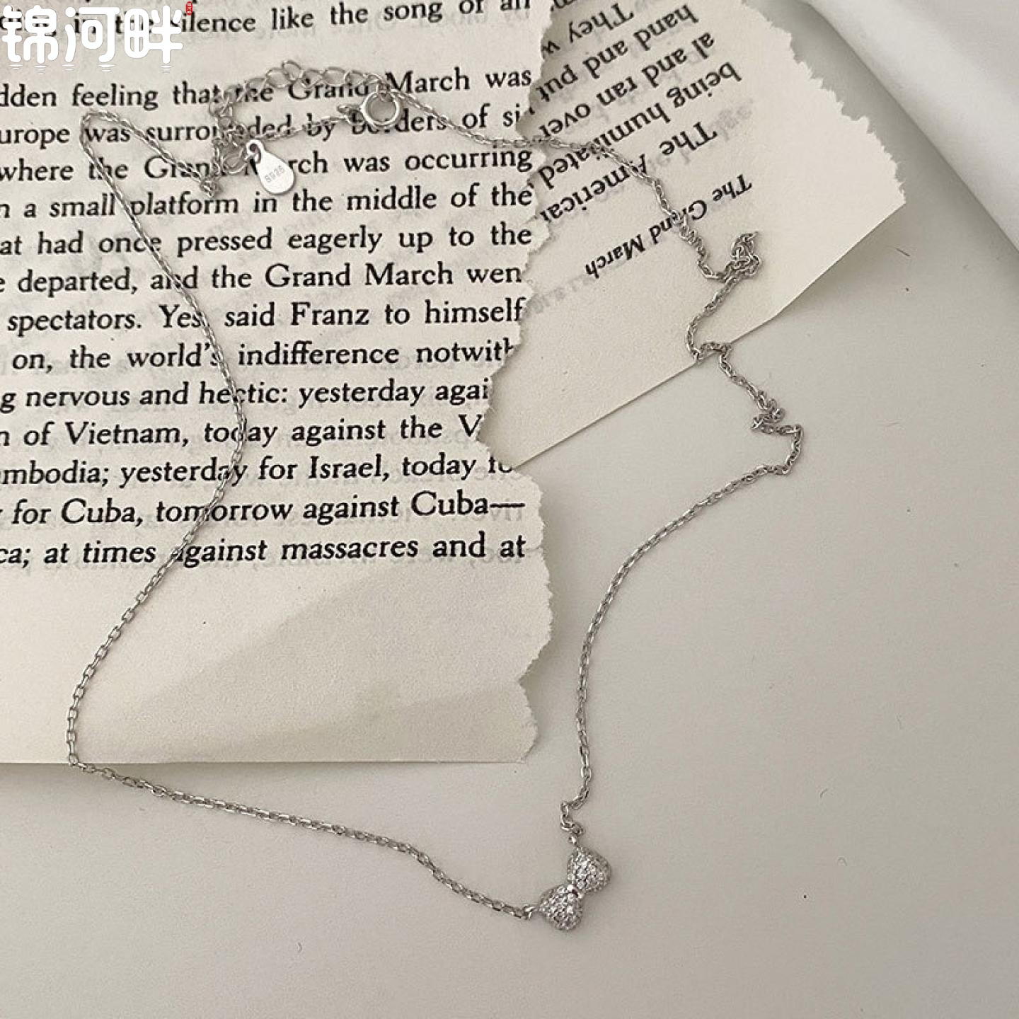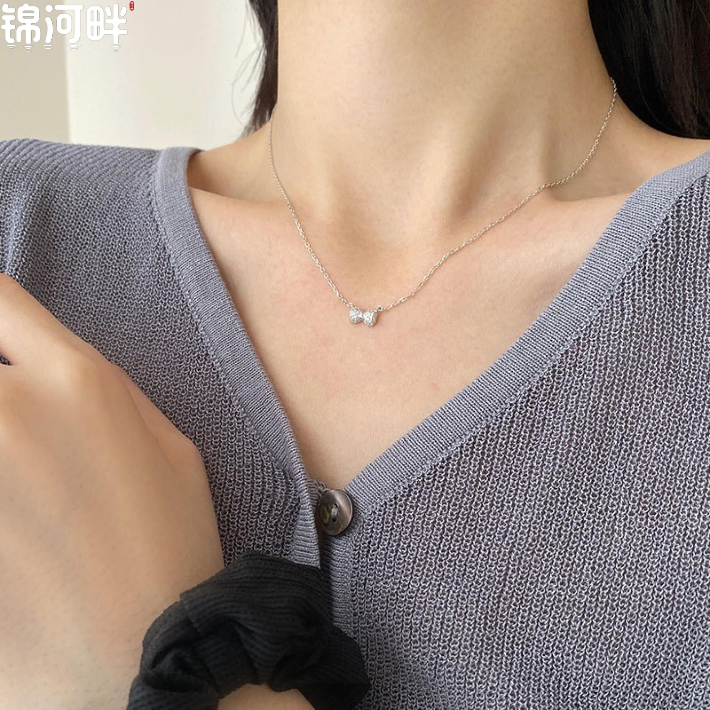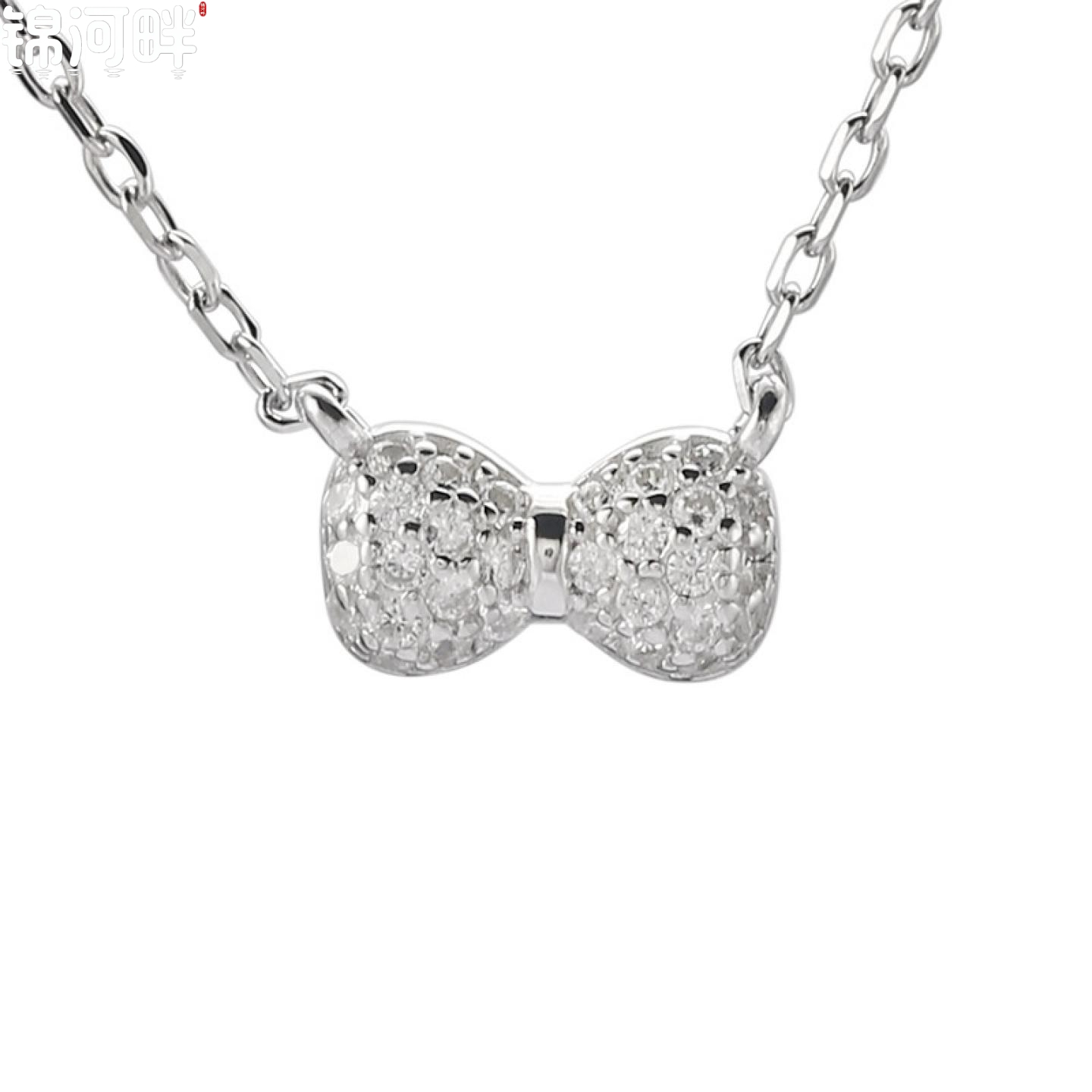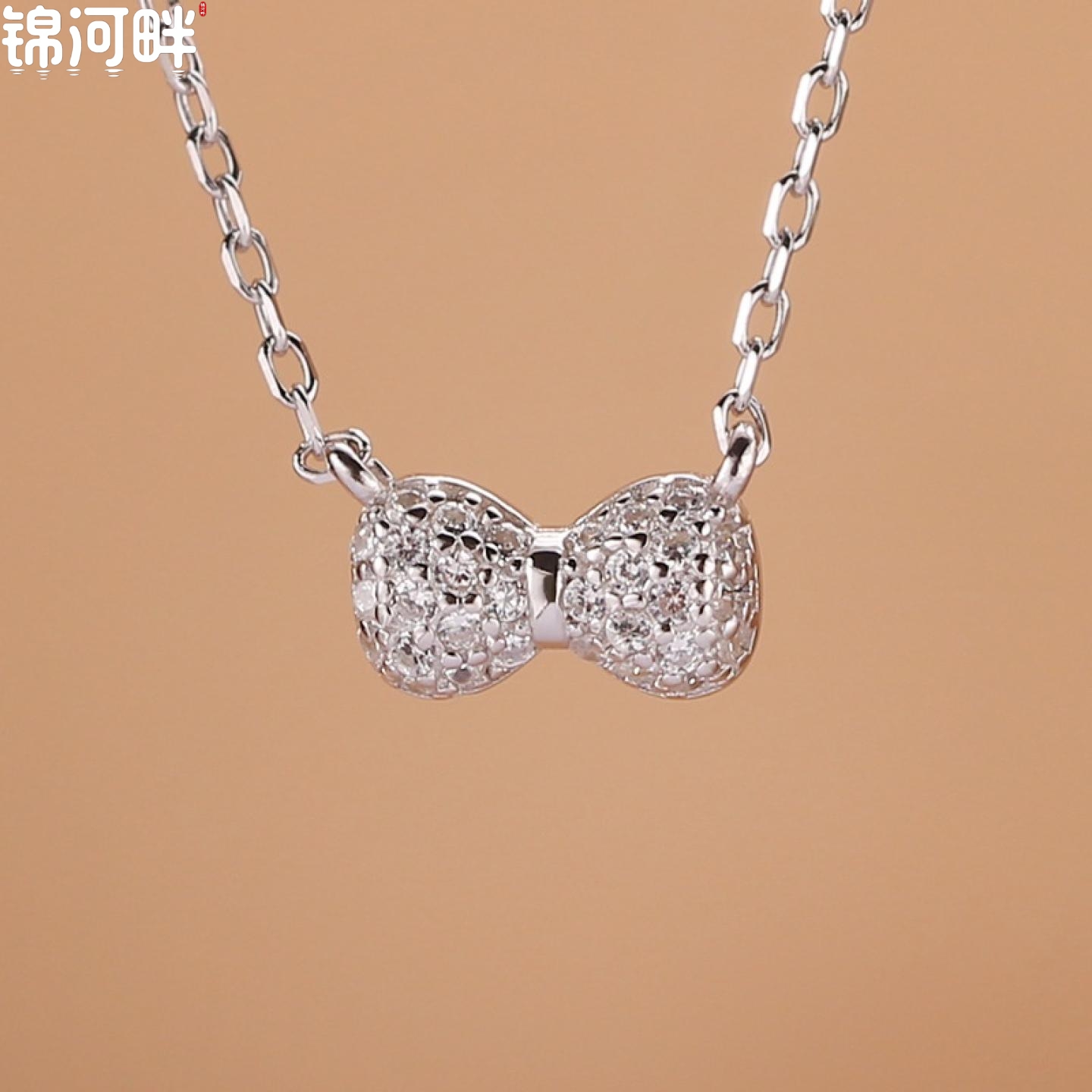 锦河畔 925纯银镶钻蝴蝶结项链女欧美简约气质甜美小众设计感