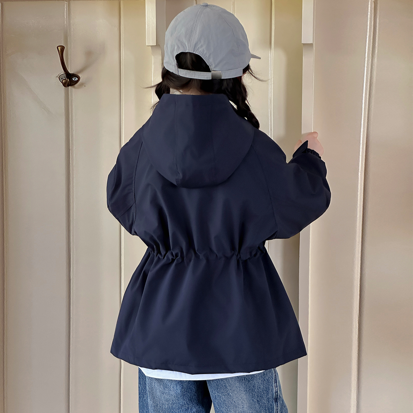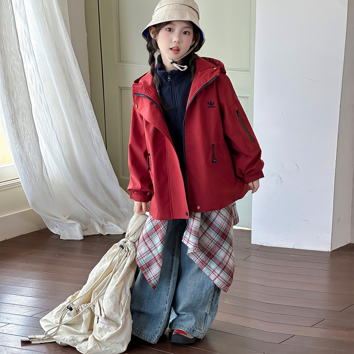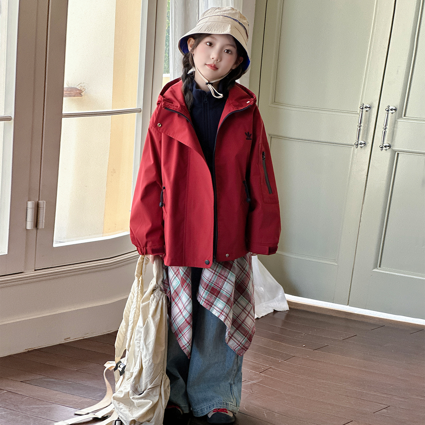 女童冲锋衣春秋2025新款中大童连帽刺绣外套韩版防水三合一拉链衫