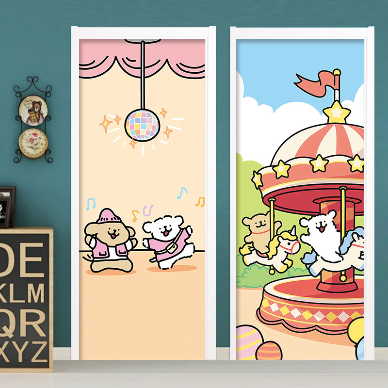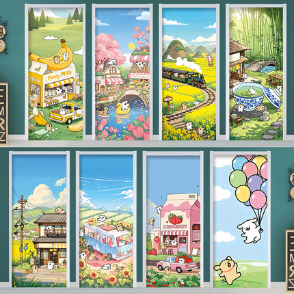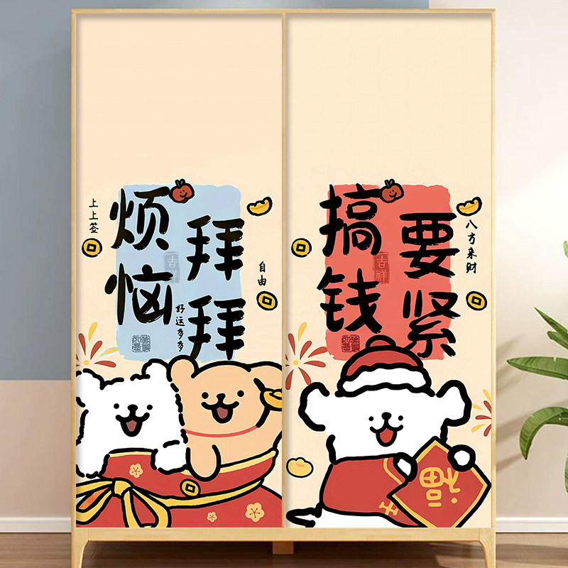 定制卡通线条狗门贴纸木门翻新自粘整张 衣柜推拉门防水创意贴画