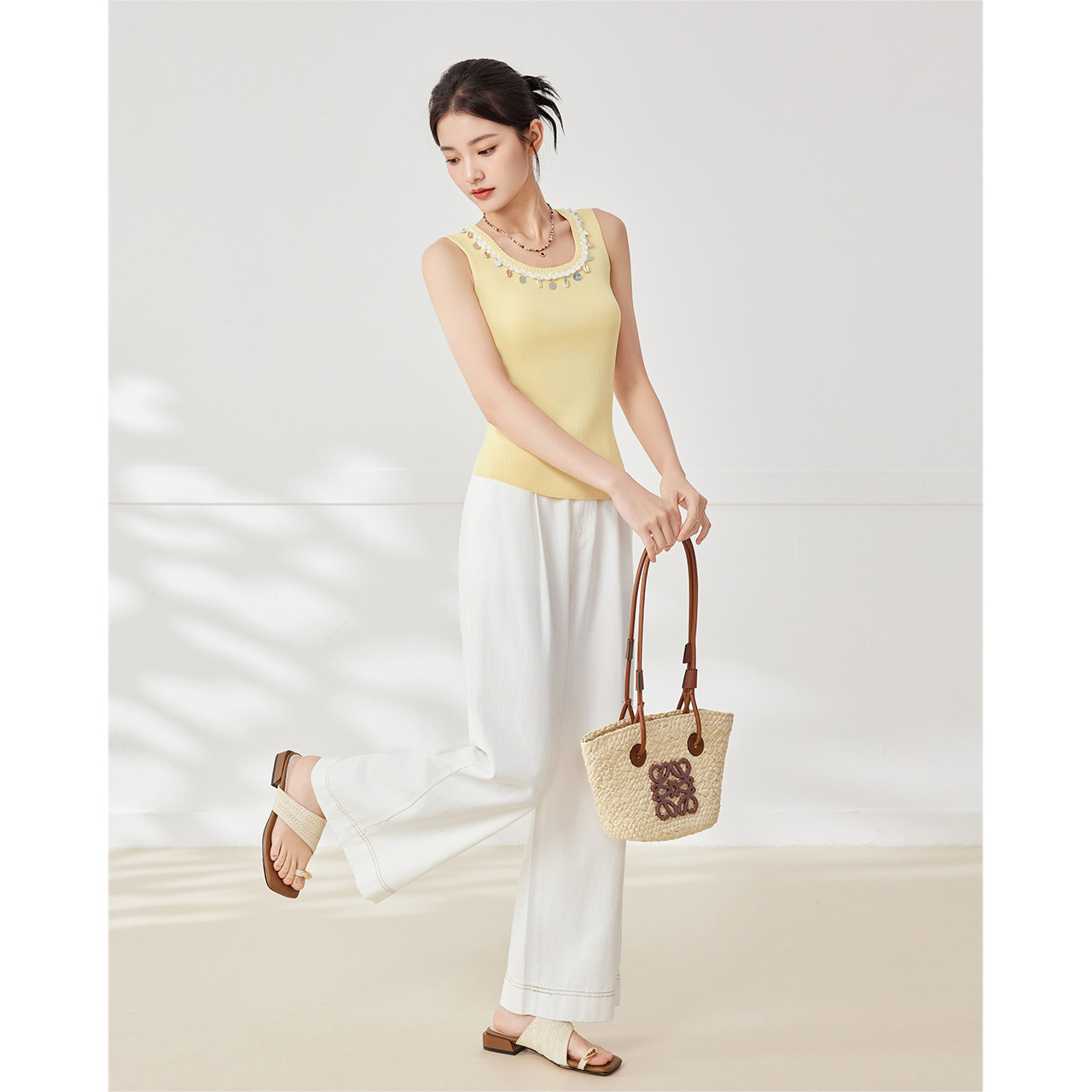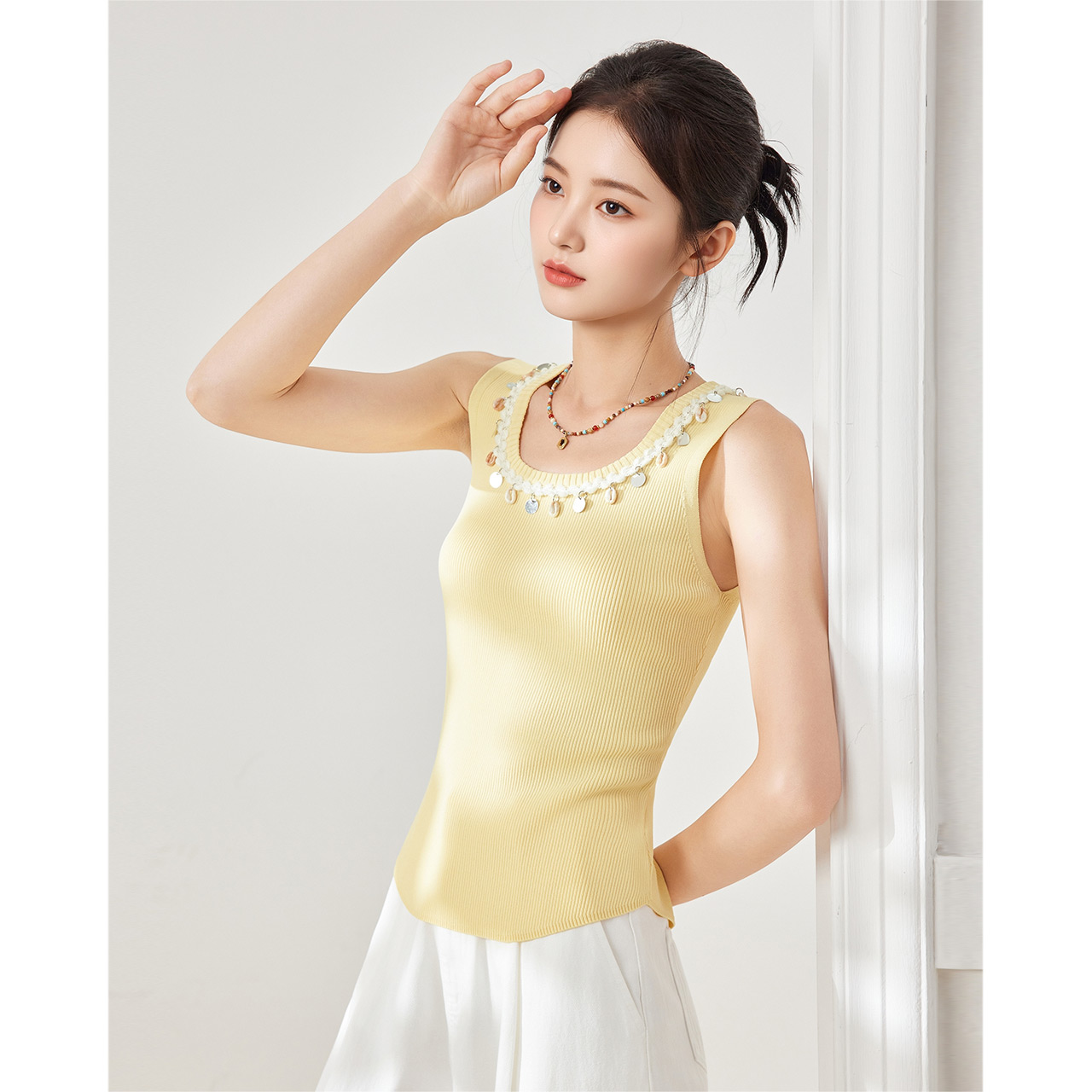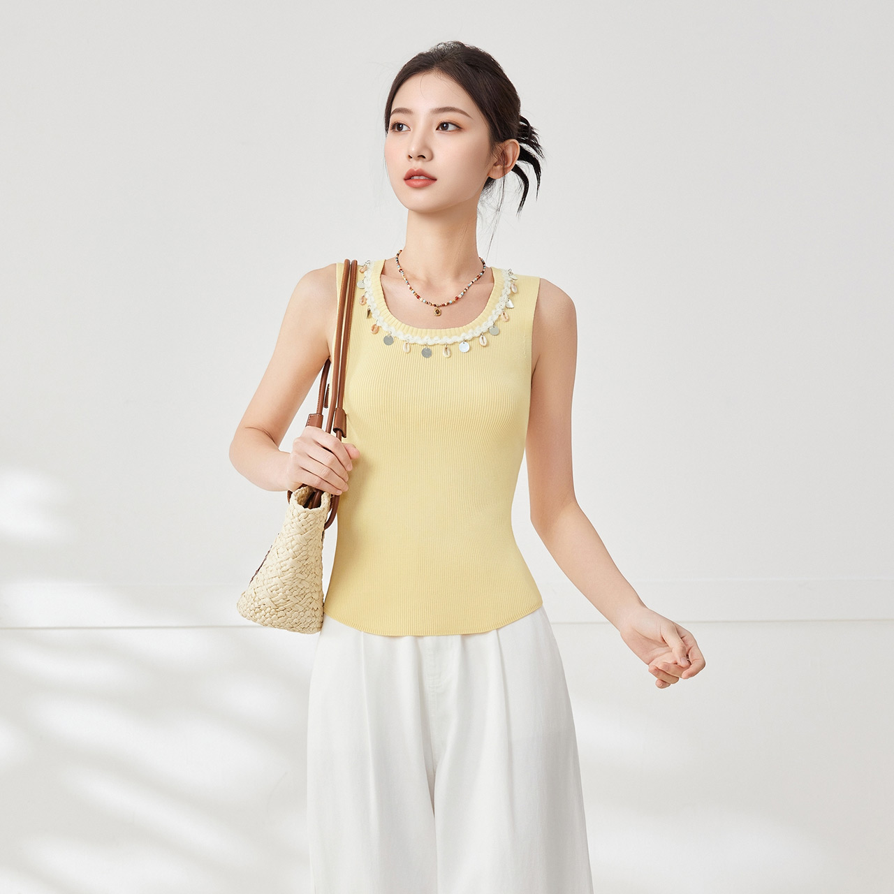 2025夏季新款时尚圆领背心女外穿修身显瘦法式无袖高级感针织上衣