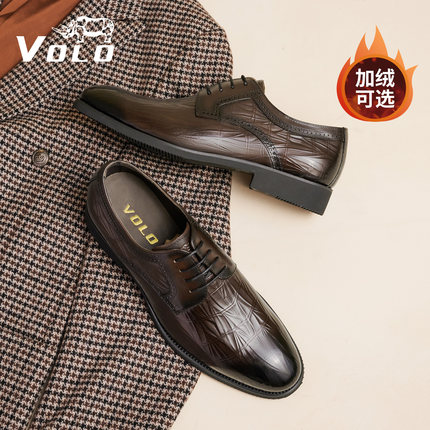 VOLO犀牛男士皮鞋男正装商务男结婚新郎内增高西装皮鞋德比鞋真皮