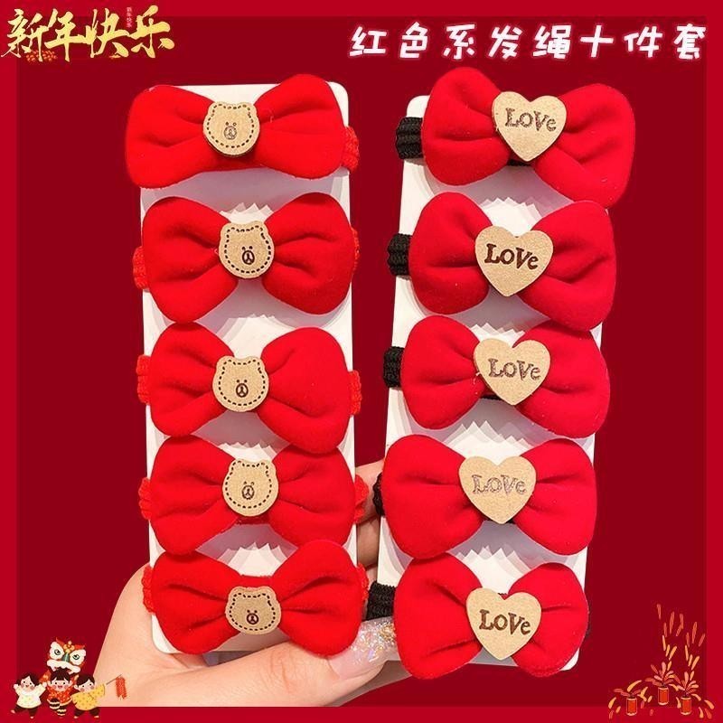 新款儿童发绳红色蝴蝶结橡皮筋女童丸子头宝宝喜庆国风头绳圈发饰