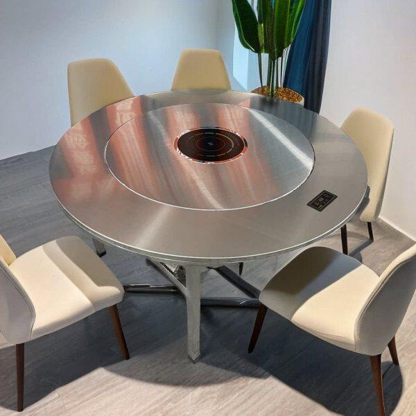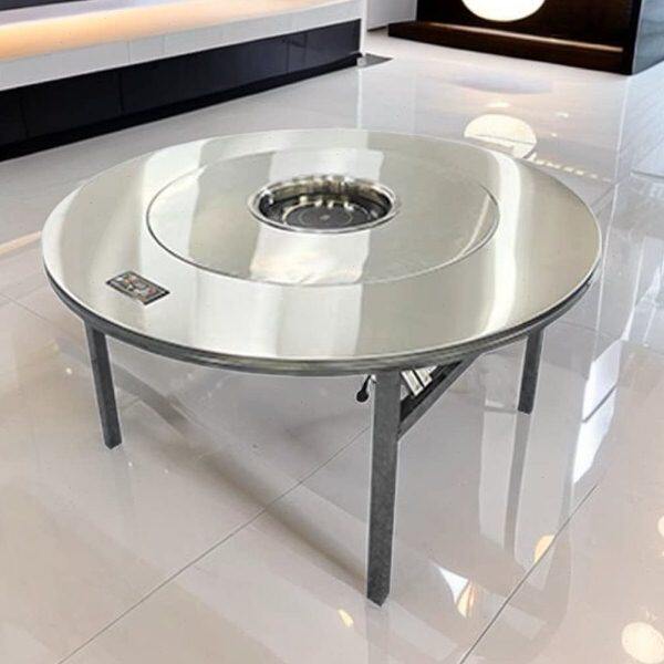 不锈钢转盘圆桌下沉式火锅桌子电磁炉一体可折叠家用餐桌商用饭桌