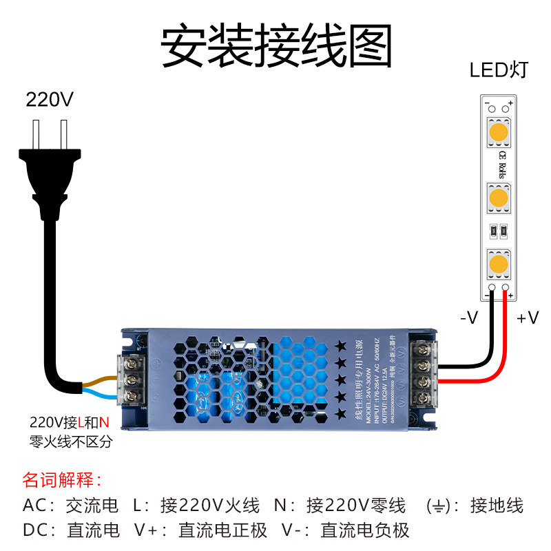 LED线性灯电源220V转12V24V灯带条灯箱线形长条超薄变压器黑金刚