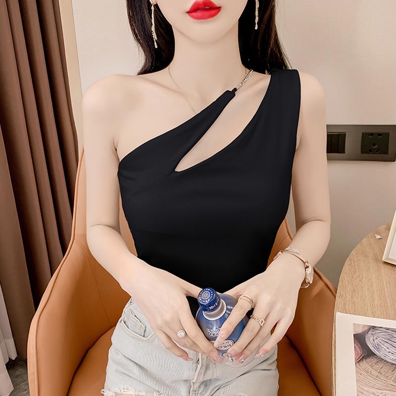 性感镂空小吊带背心女2024夏装新款外穿内搭打底别致斜肩挂脖上衣